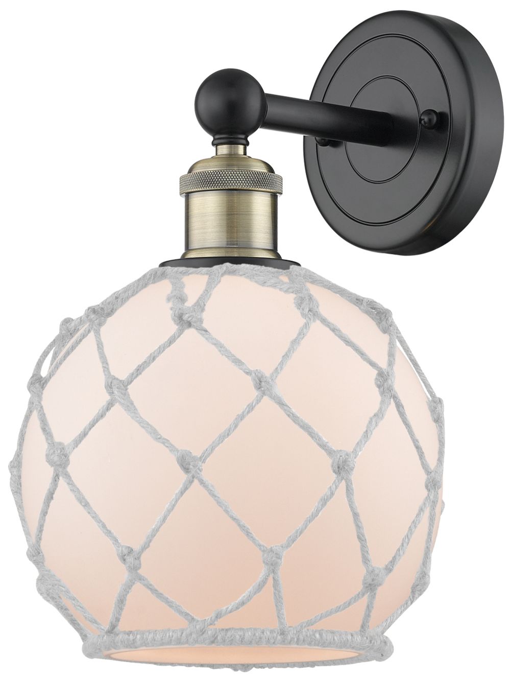 Edison Farmhouse Rope 12"H Black And Brass Sconce w/ White Glass Shade