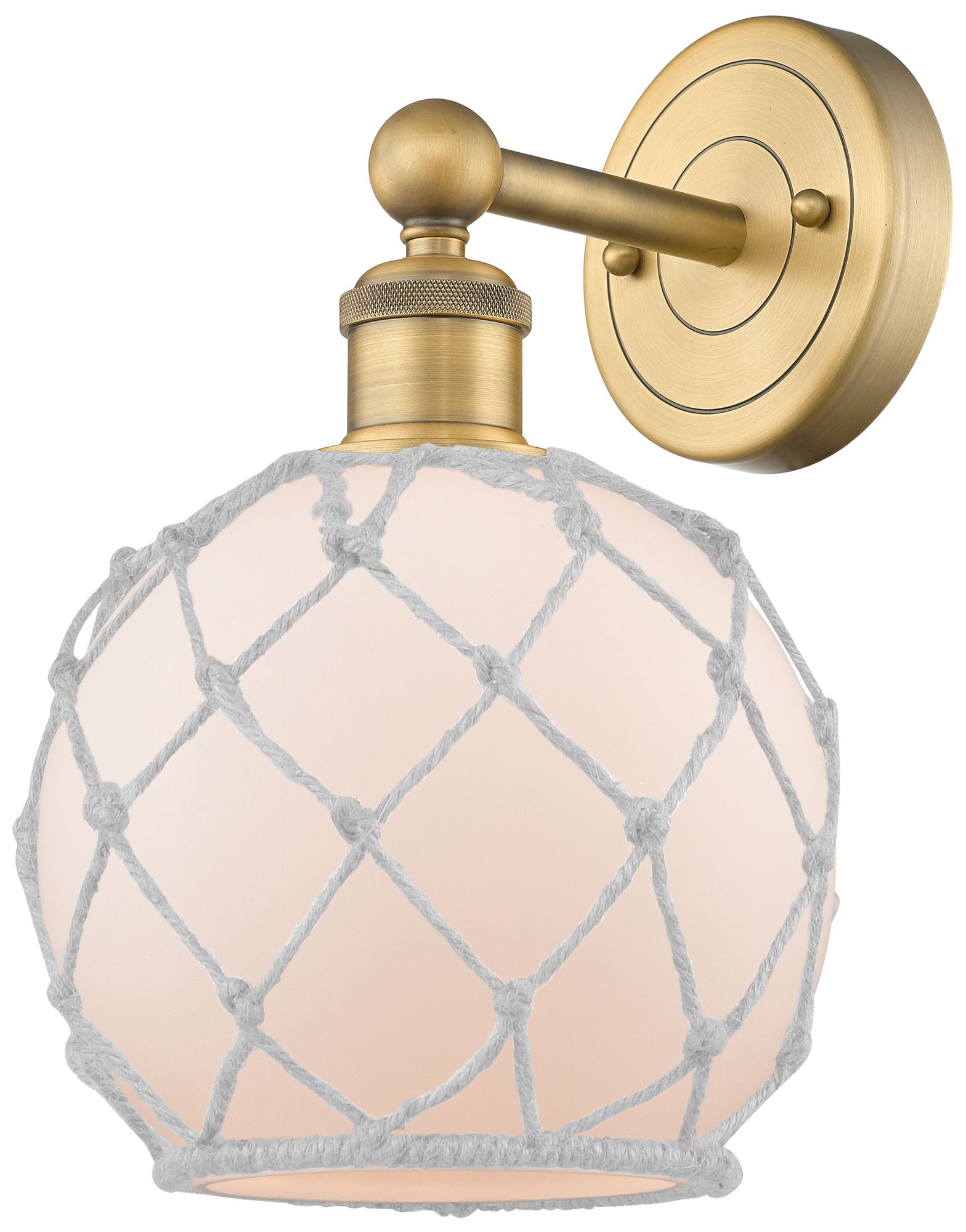 Edison Farmhouse Rope 12"H Brushed Brass Sconce With White Glass Shade