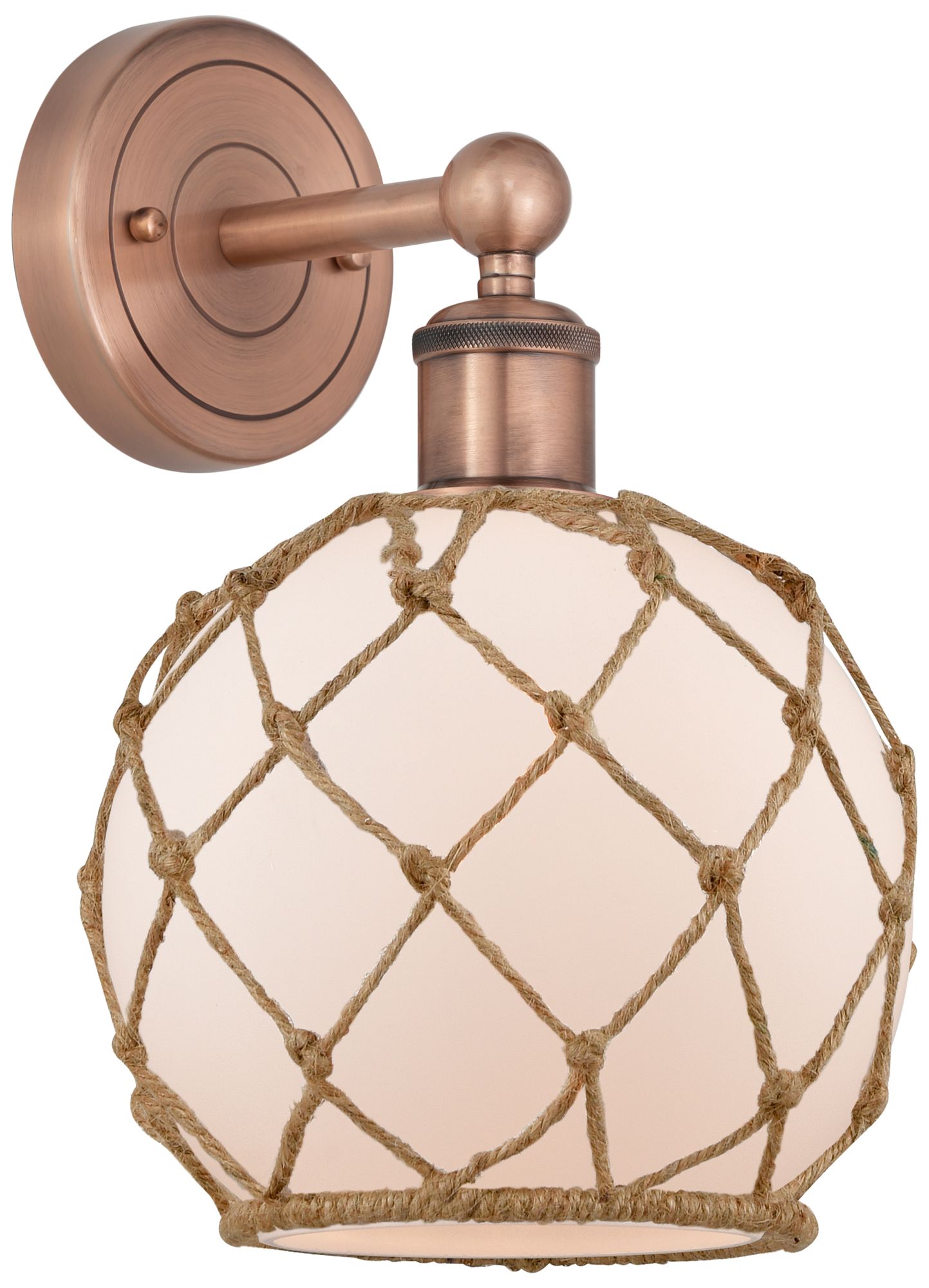 Edison Farmhouse Rope 12"H Copper Sconce With White Glass Brown Shade