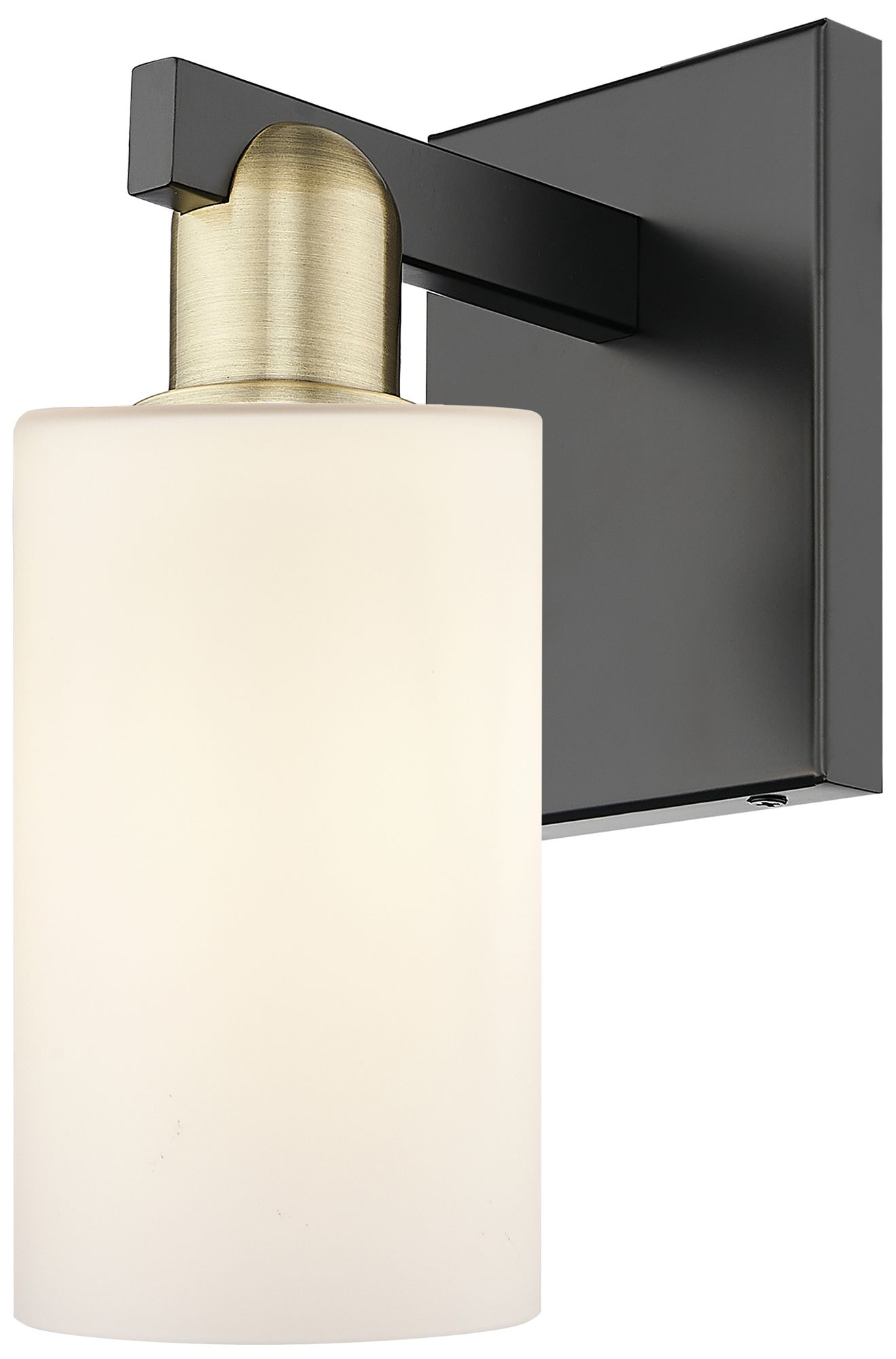 Arcadia Clymer 11"H Black Antique Brass Sconce With Matte White Shade