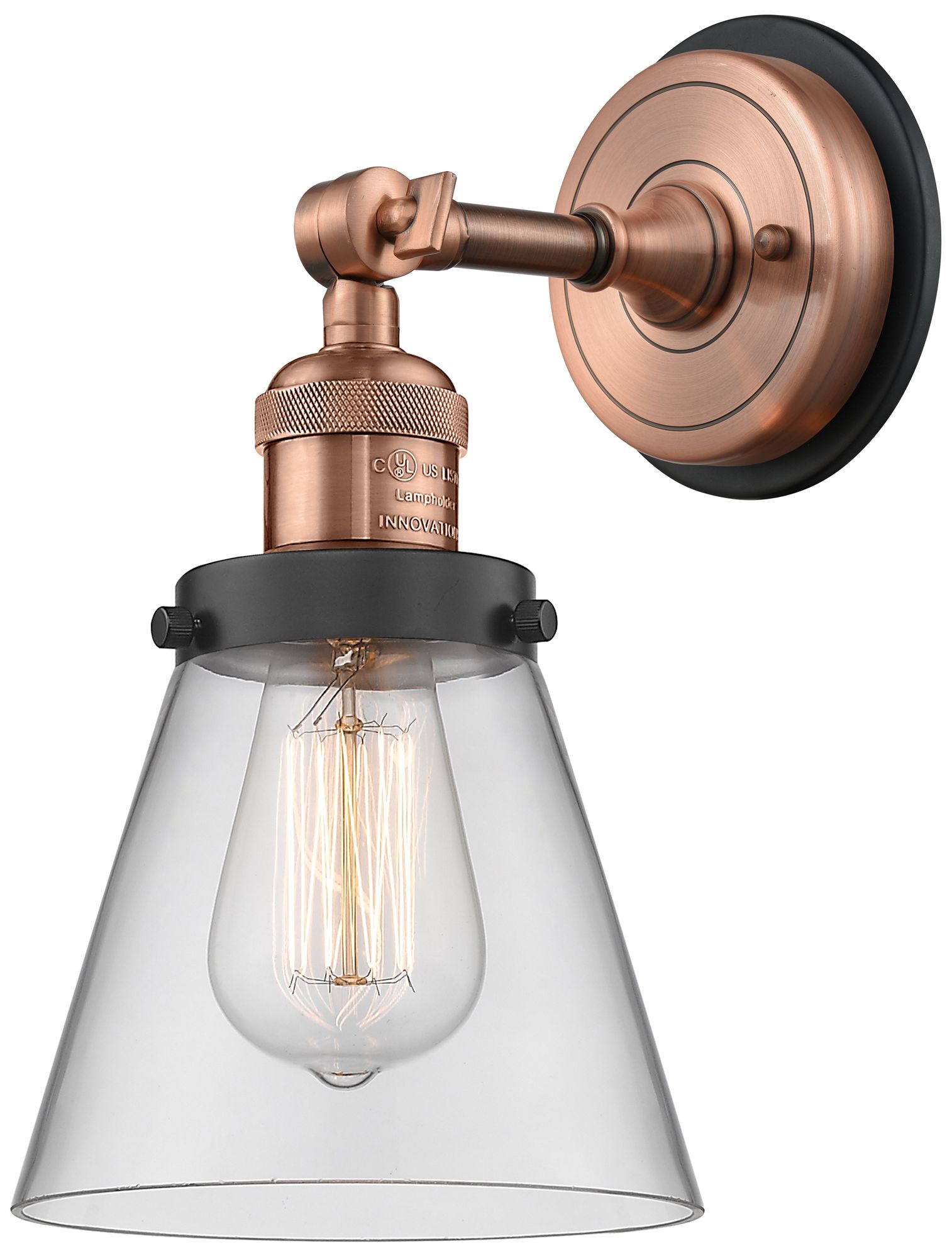 Cone 8" Antique Copper Sconce w/ Clear Shade