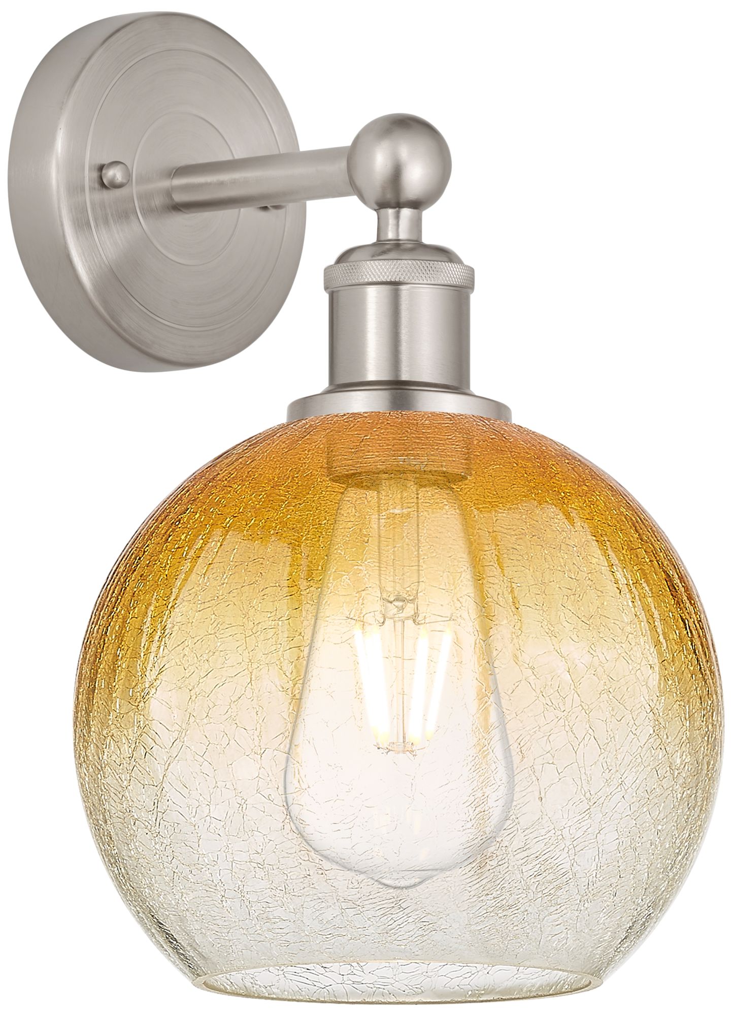 Brookhaven Globe 12" High Brushed Satin Nickel Sconce with Amber Shade