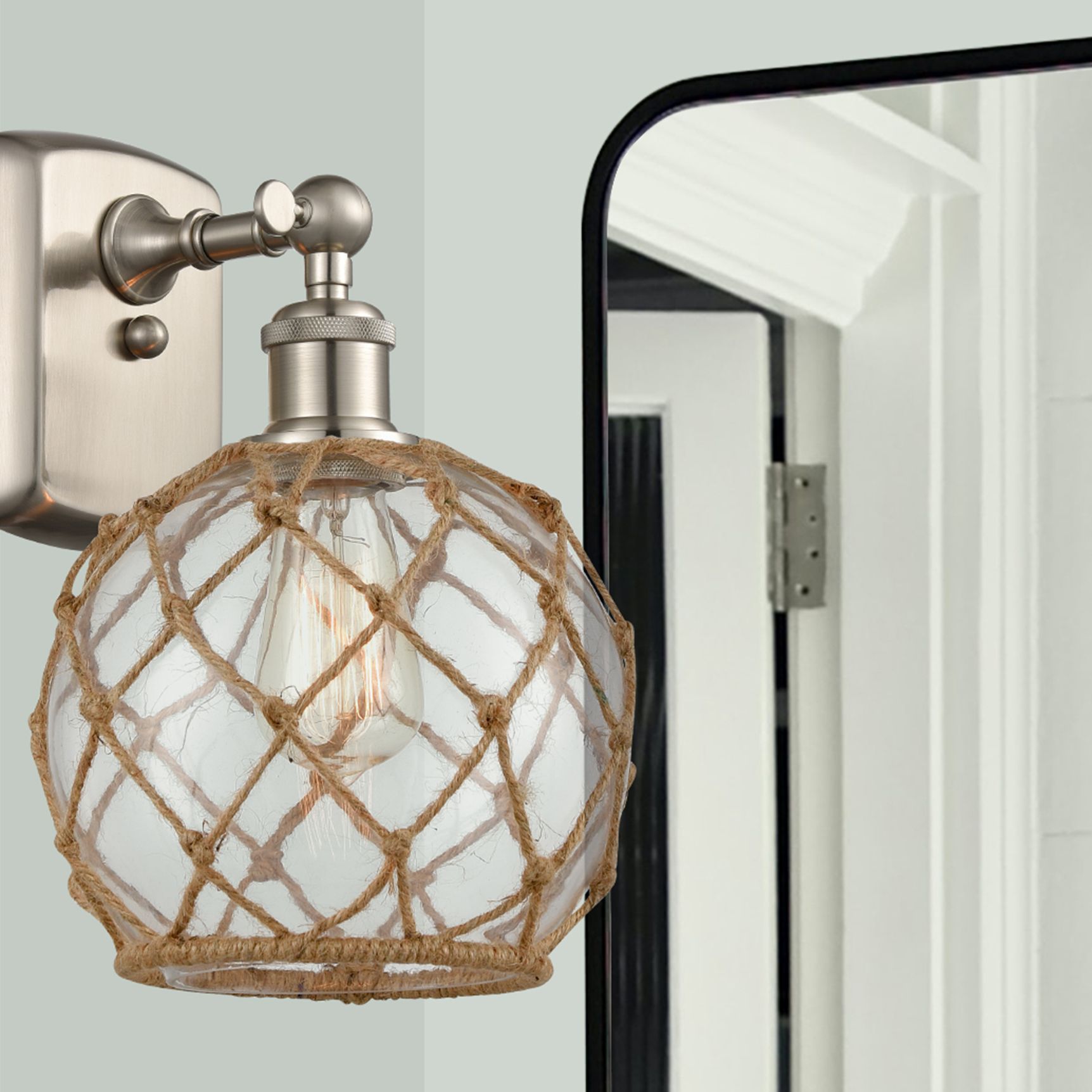 Farmhouse Rope 13" High Brushed Nickel Sconce w/ Clear and Brown Rope