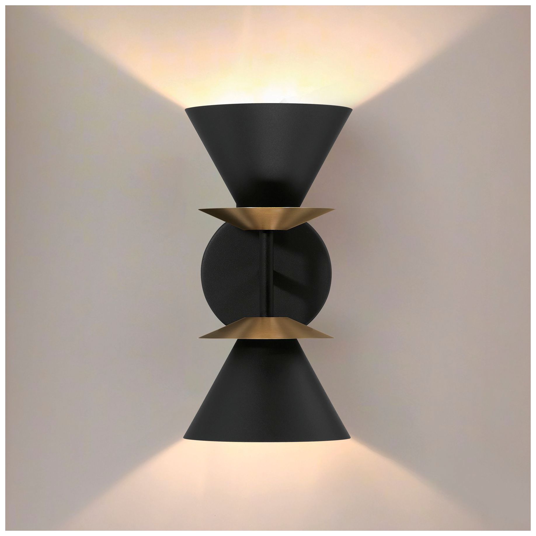 Thesis Tremolo 12 in. 2 Light Textured Black and Champagne Gold Wall Sconce