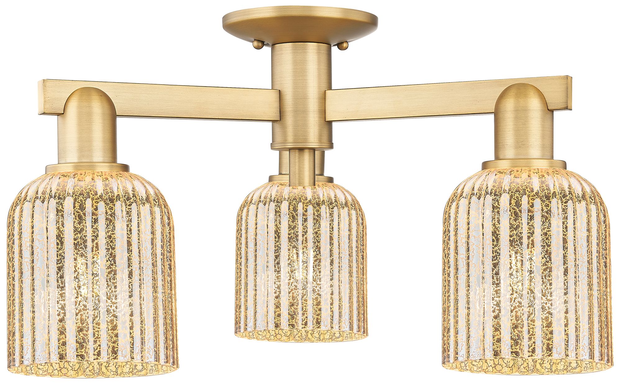 Bridal Veil 23"W 3 Light Brushed Brass Semi-Flush With Mercury Shade