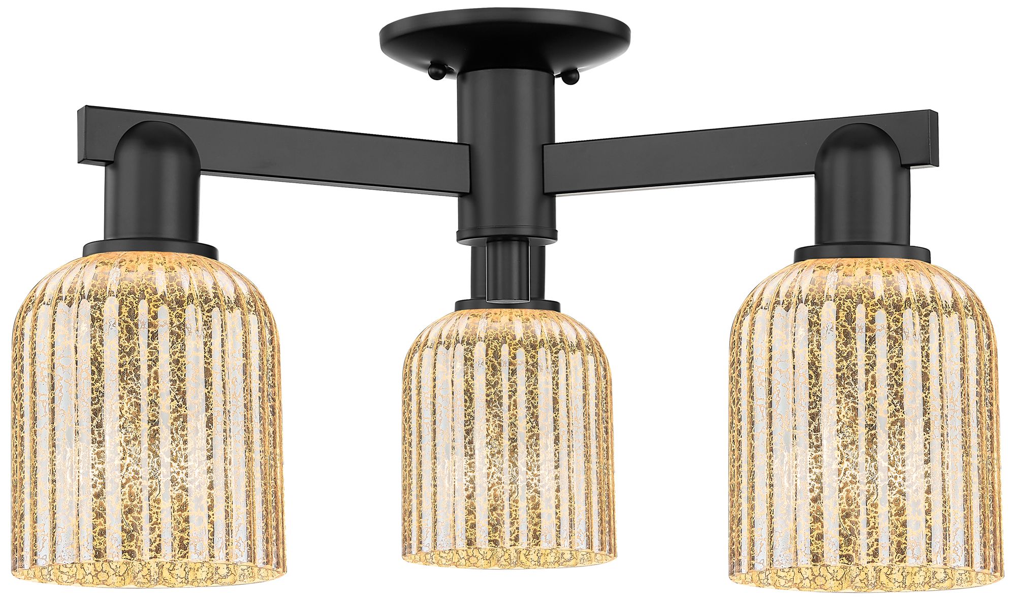 Bridal Veil 23"W 3 Light Matte Black Semi-Flush With Mercury Shade