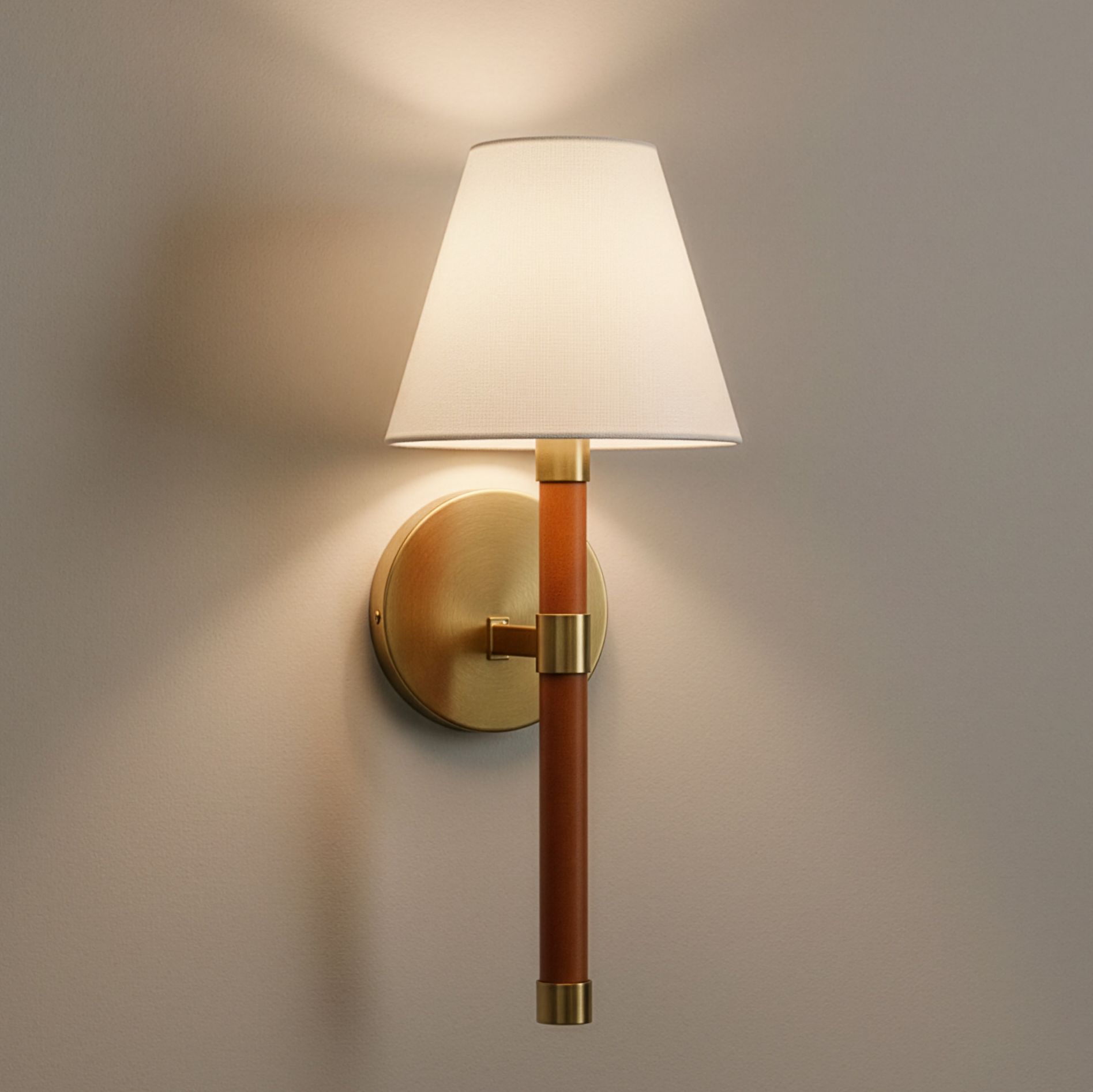 New Ashley 10 1/2" High Antique Brass and Leather Wall Sconce