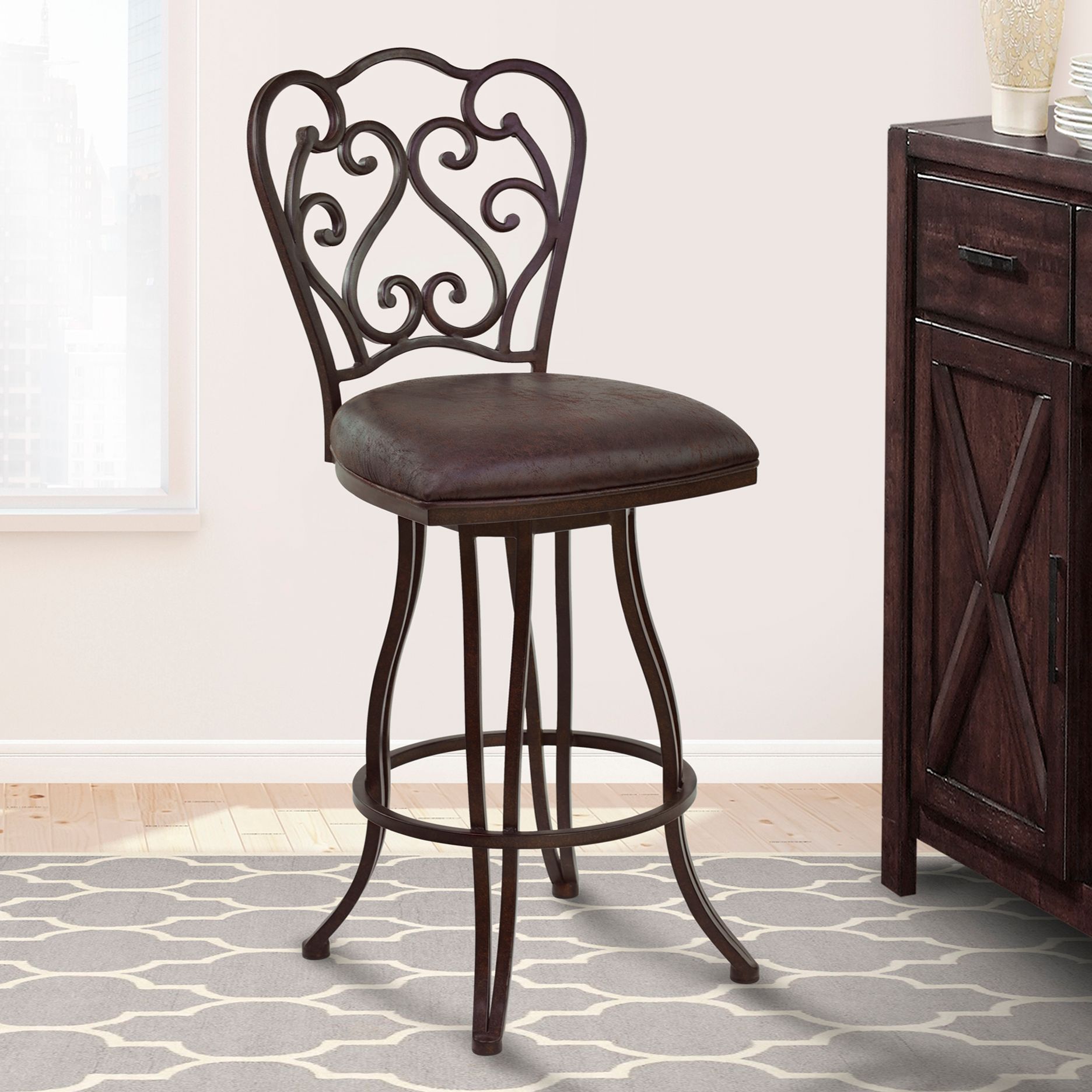 Celeste 26 in. Swivel Barstool in Bandero Espresso Fabric and Auburn Bay