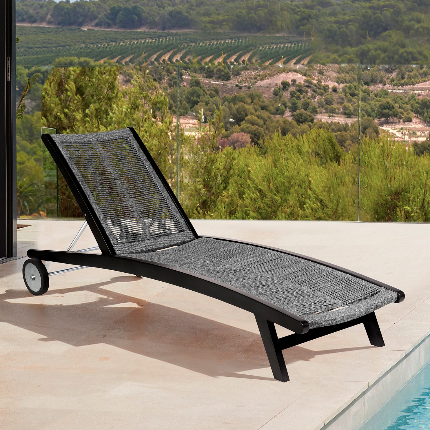 Chateau Outdoor Patio Adjustable Chaise Lounge Chair in Eucalyptus Wood