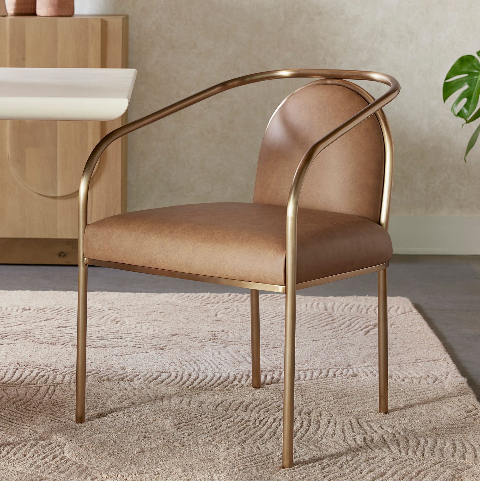 Sunpan Cicero Dining Armchair Milliken Cognac