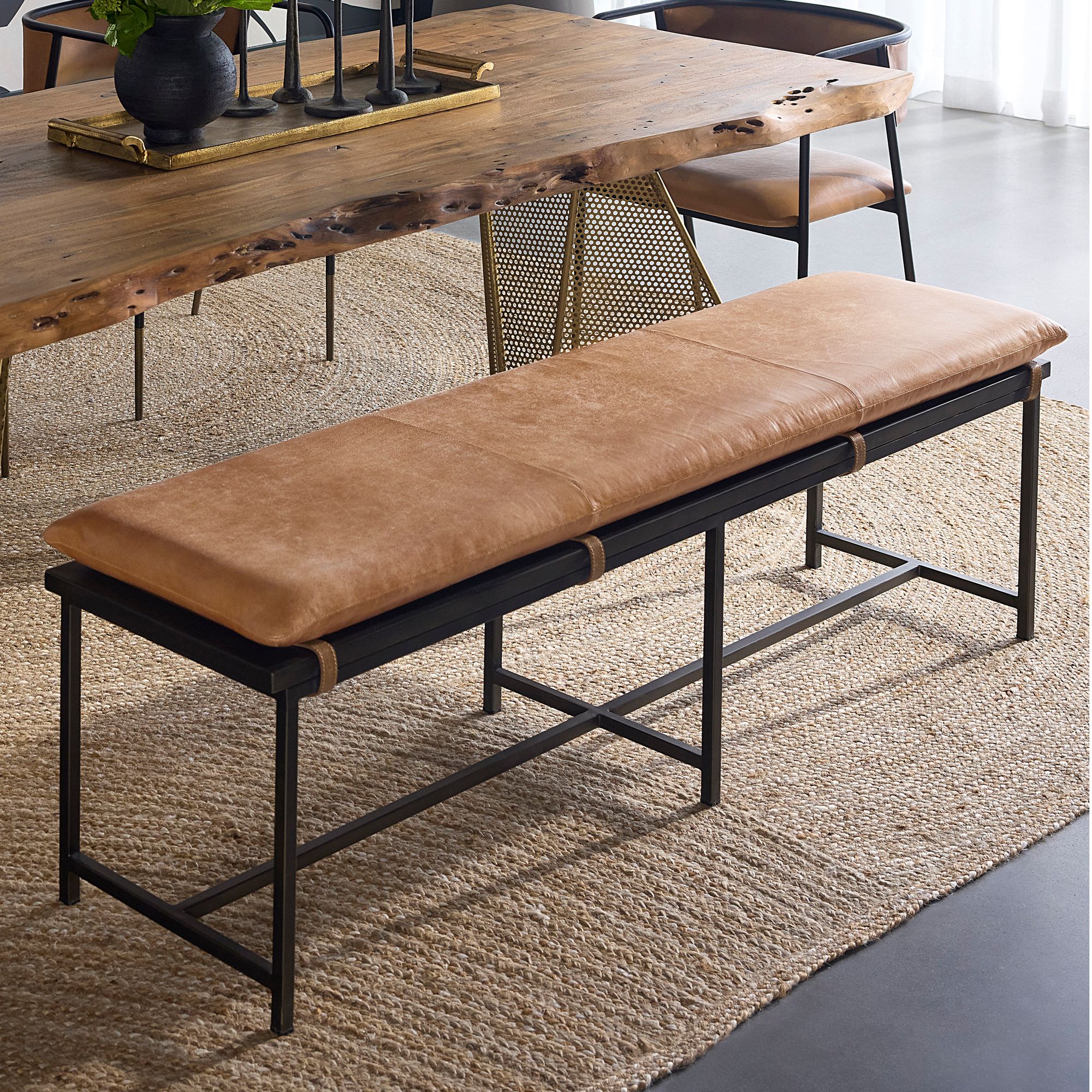 Sunpan Zancor Bench Gunmetal Tan Leather