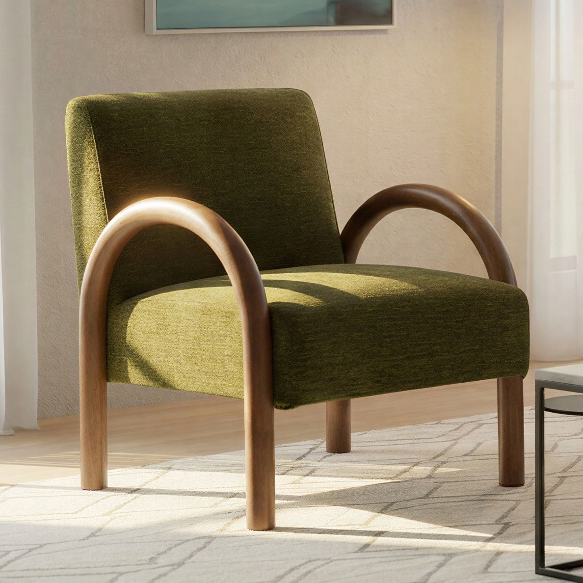 Eloria Mid-Century Modern Chenille Wood Armchair in Cream