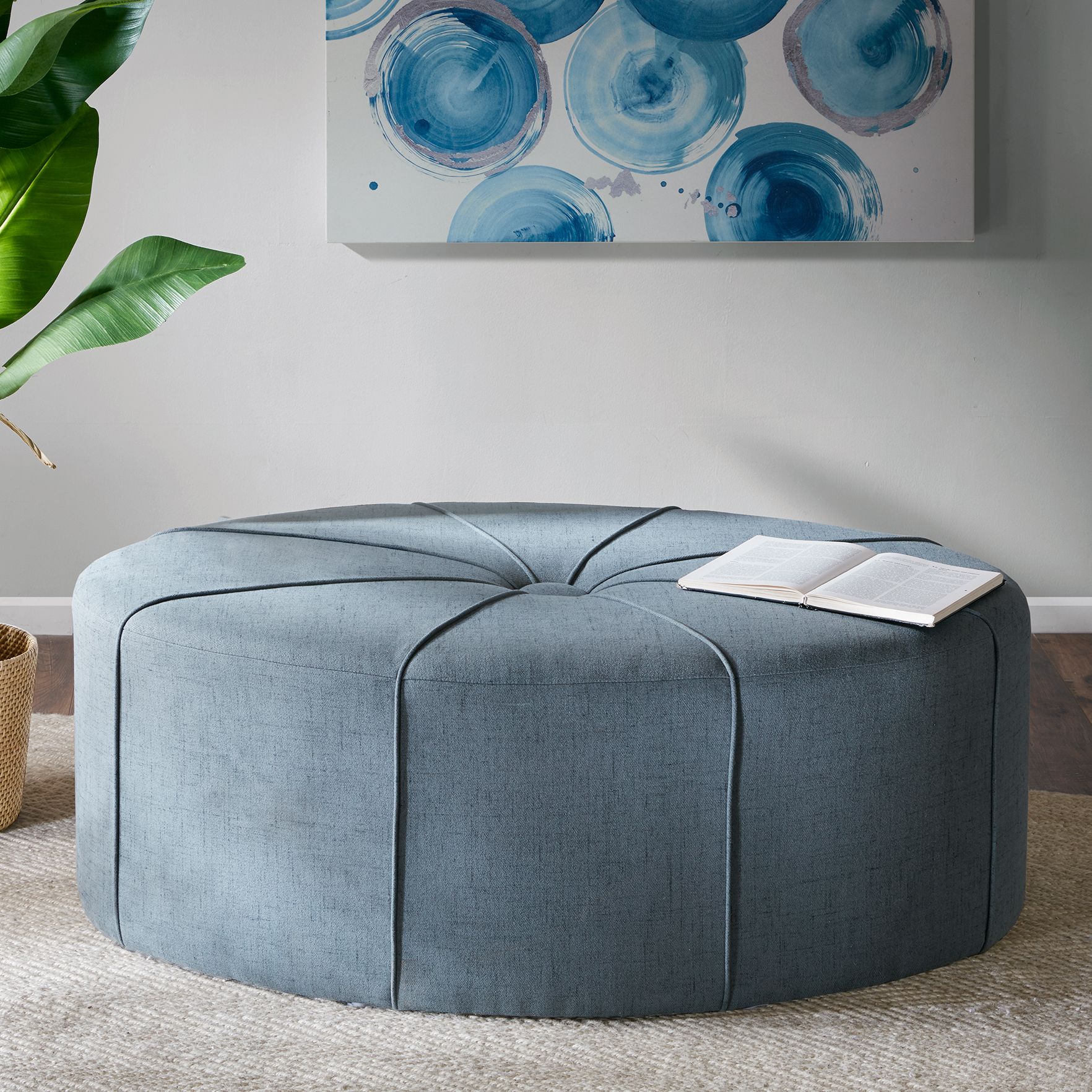 Madison Park Blue Aberdeen Oval Ottoman