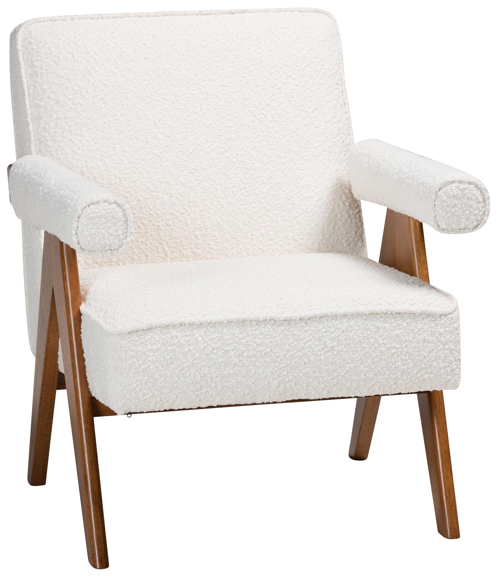 Baxton Studio Georgina Cream Boucle and Walnut Brown Wood Accent Chair