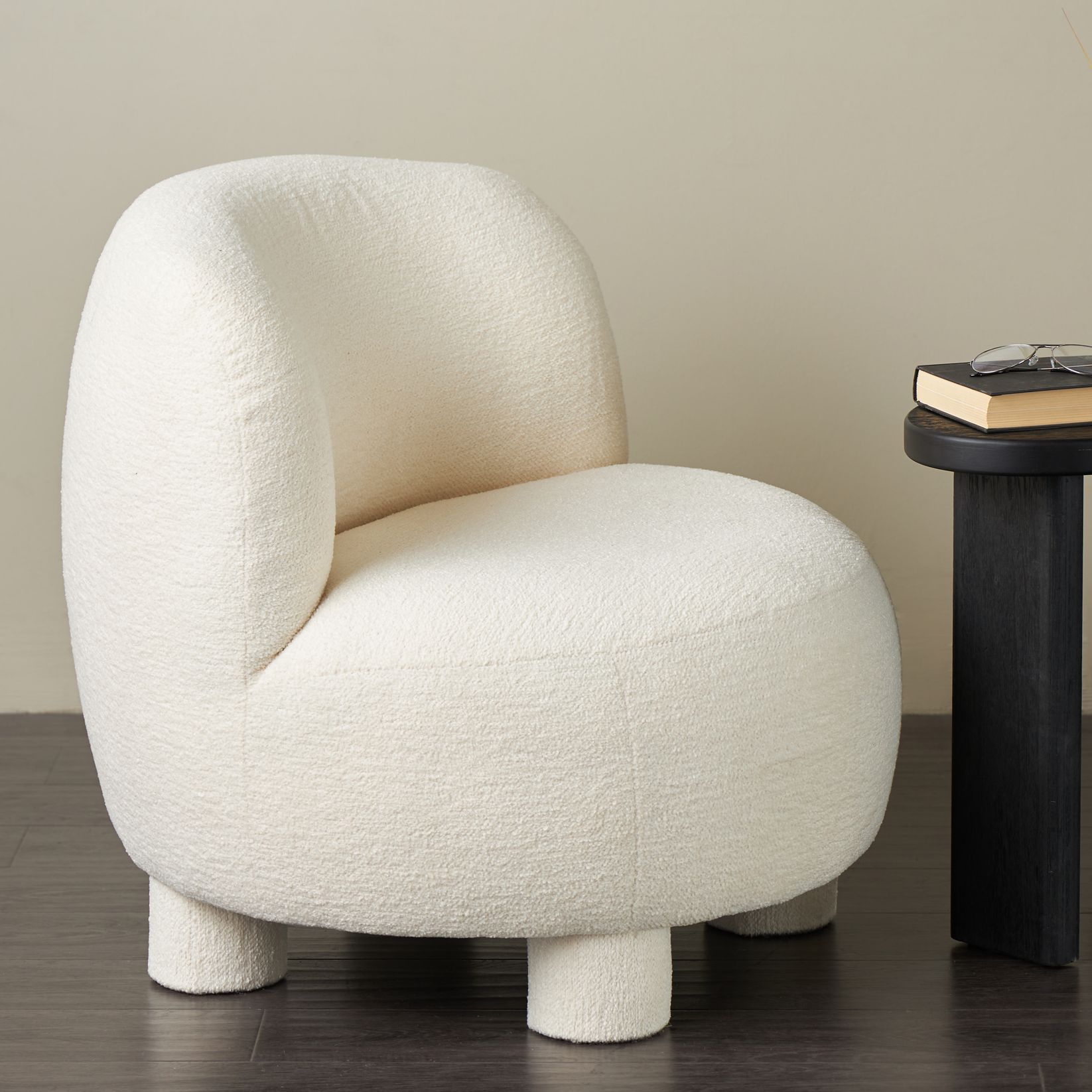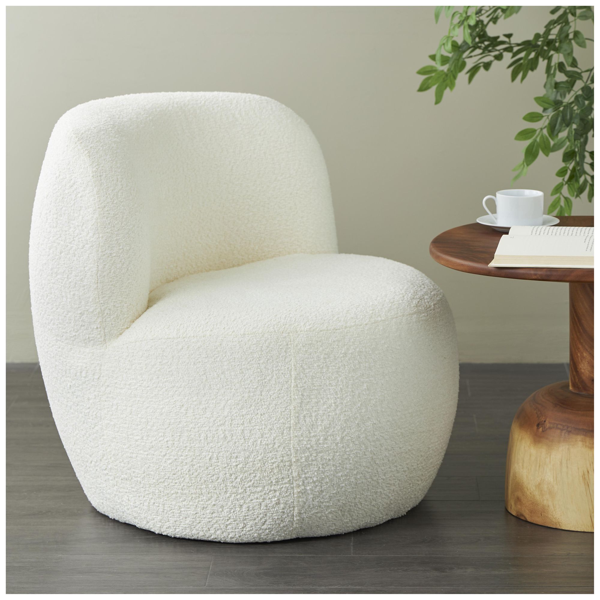Cream Polyester Curved Back Round Boucle Accent Chair, 27" x 23" x 28"
