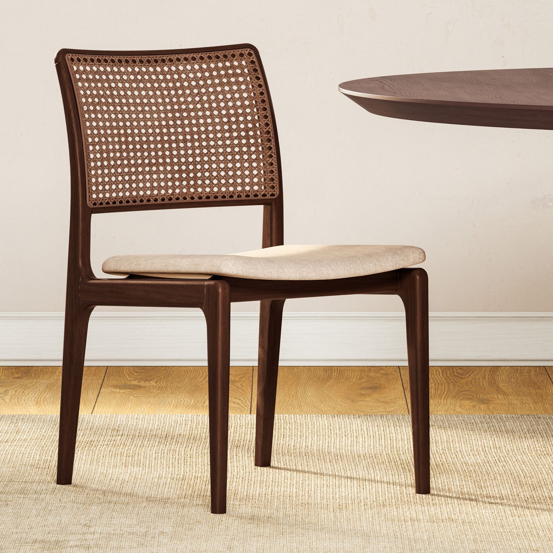 Modern Brazilian Charlotte 19.5" Wide Medley Ivory Dining Chair Nogal Frame