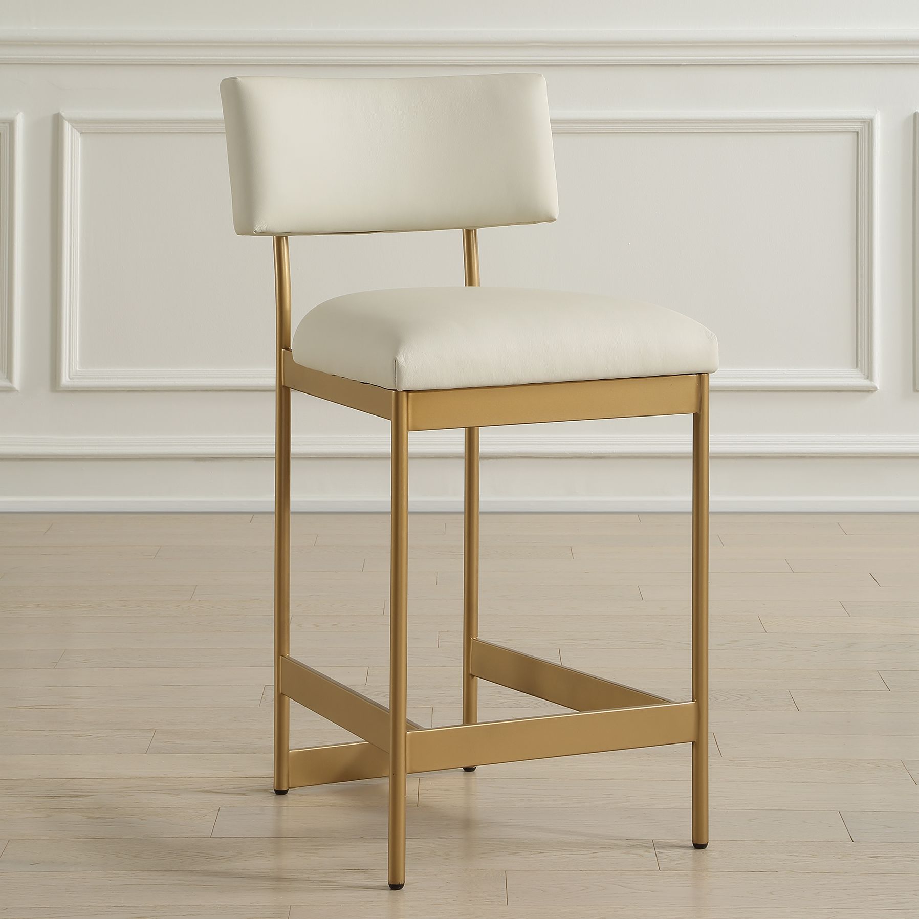 Uttermost Apsley Gold and White Leather Counter Stool