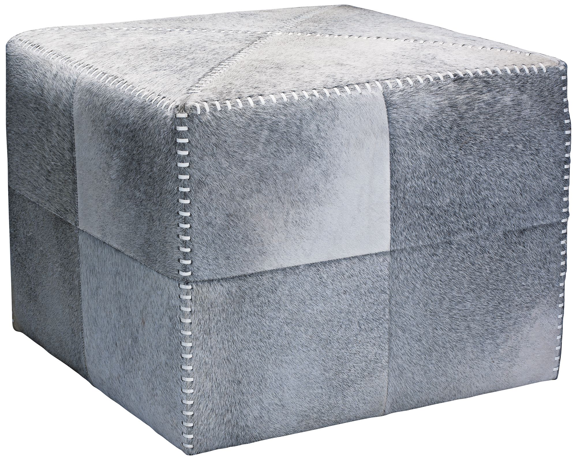 Jamie Young Large Square Gray Hide Leather Ottoman