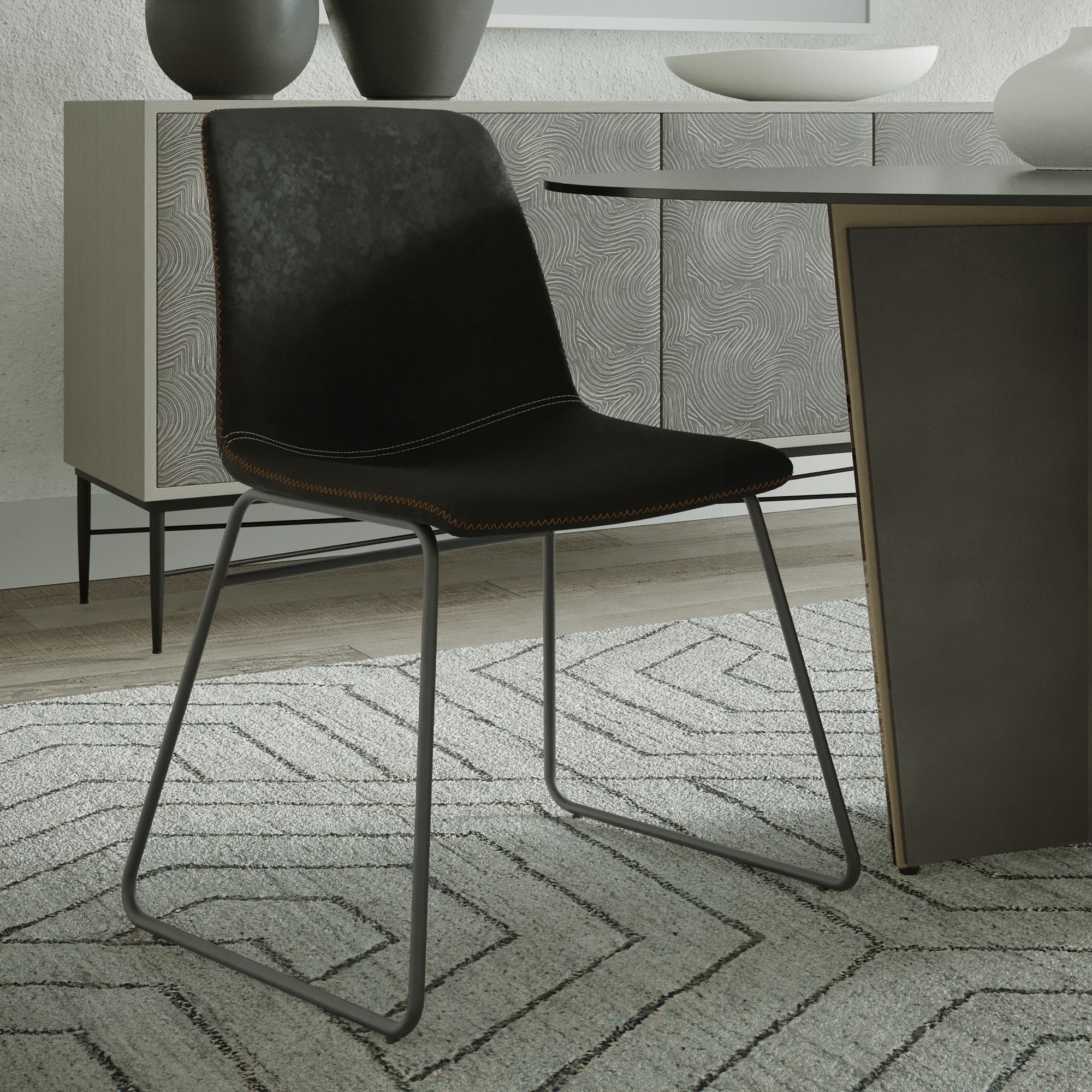 Conrad Black Faux Leather Dining Chair (Set of 2)