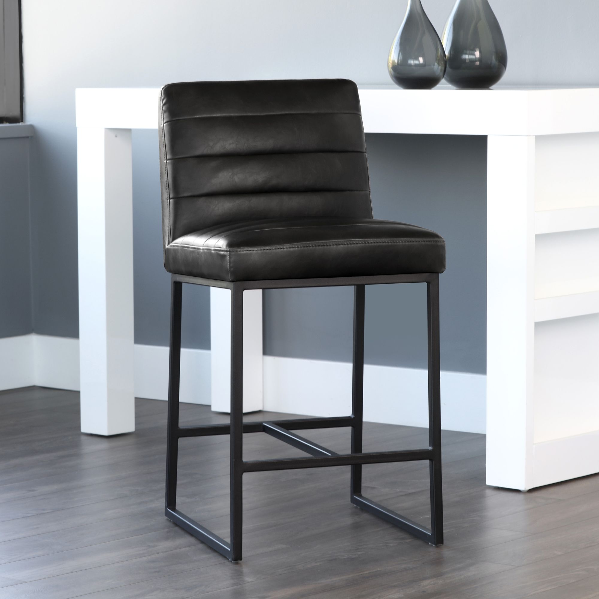 Ethan Leather Bar Stool (Black)