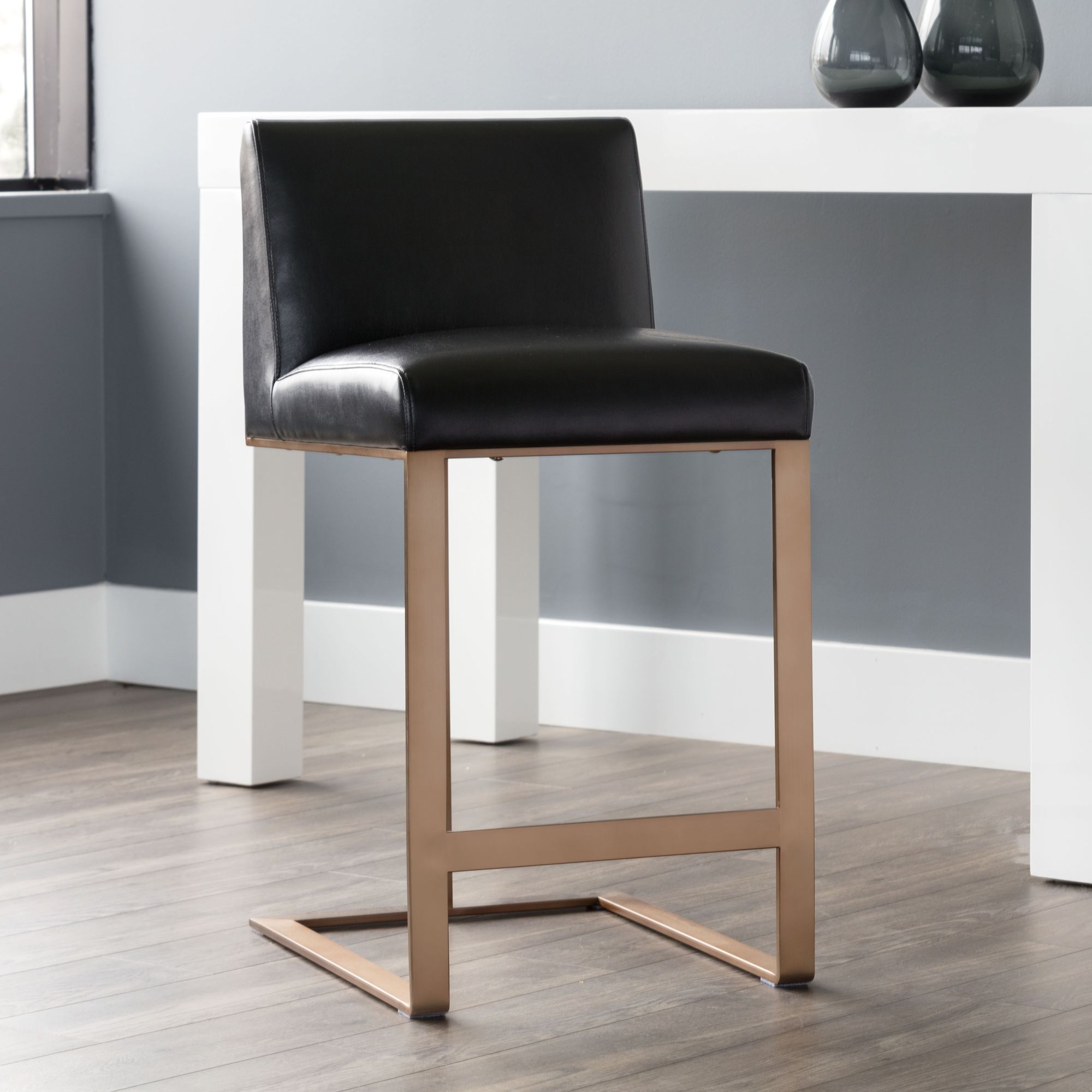 Sunpan Dean Counter Stool Antique Brass Cantina Black