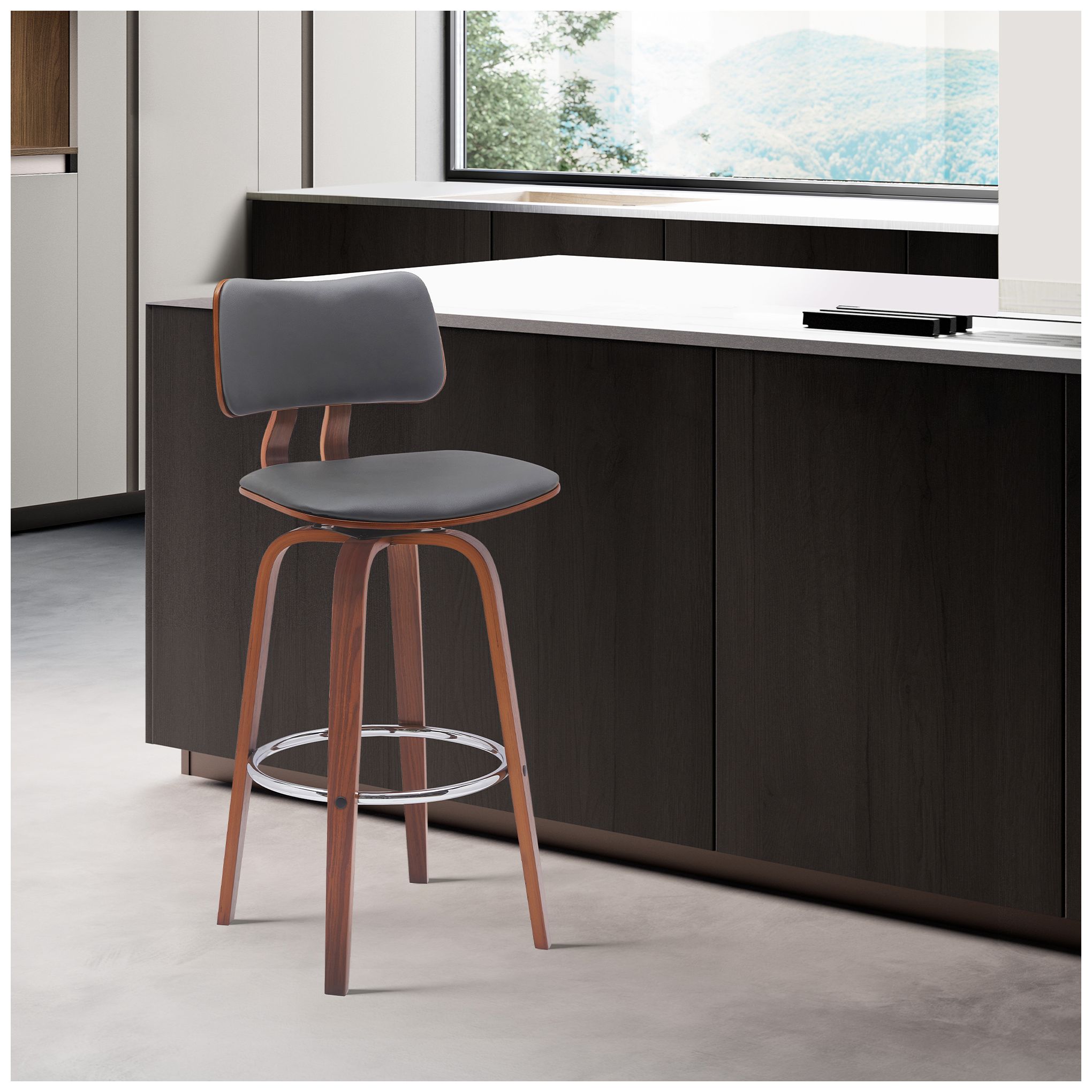 Pico 26" Gray Faux Leather and Walnut Swivel Counter Stool