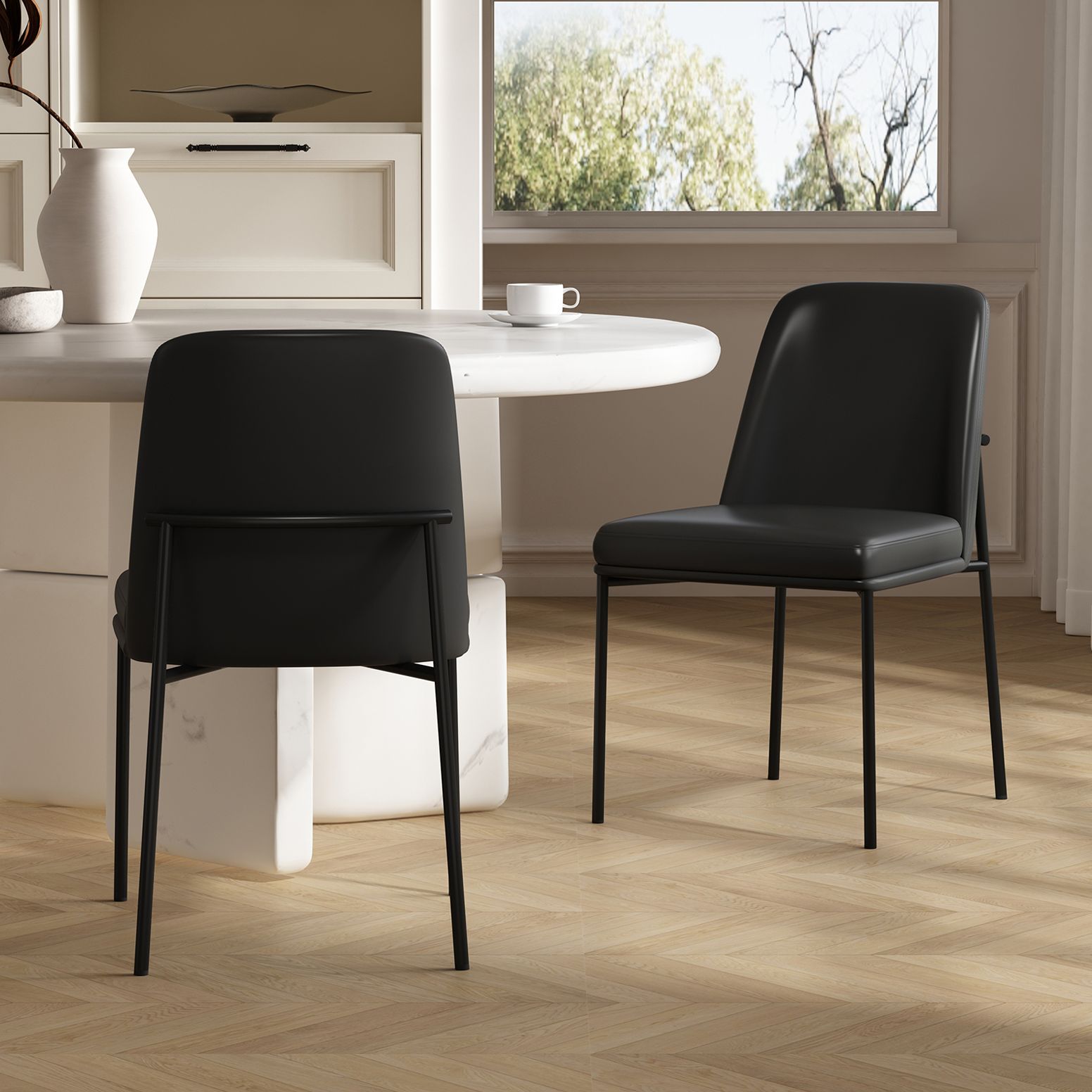 Loft Contemporary Vegan Leather Metal Side Chair in Black - Set of 2