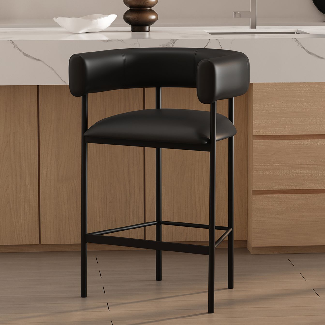 Onda Contemporary Vegan Leather Metal Counter Stool in Black