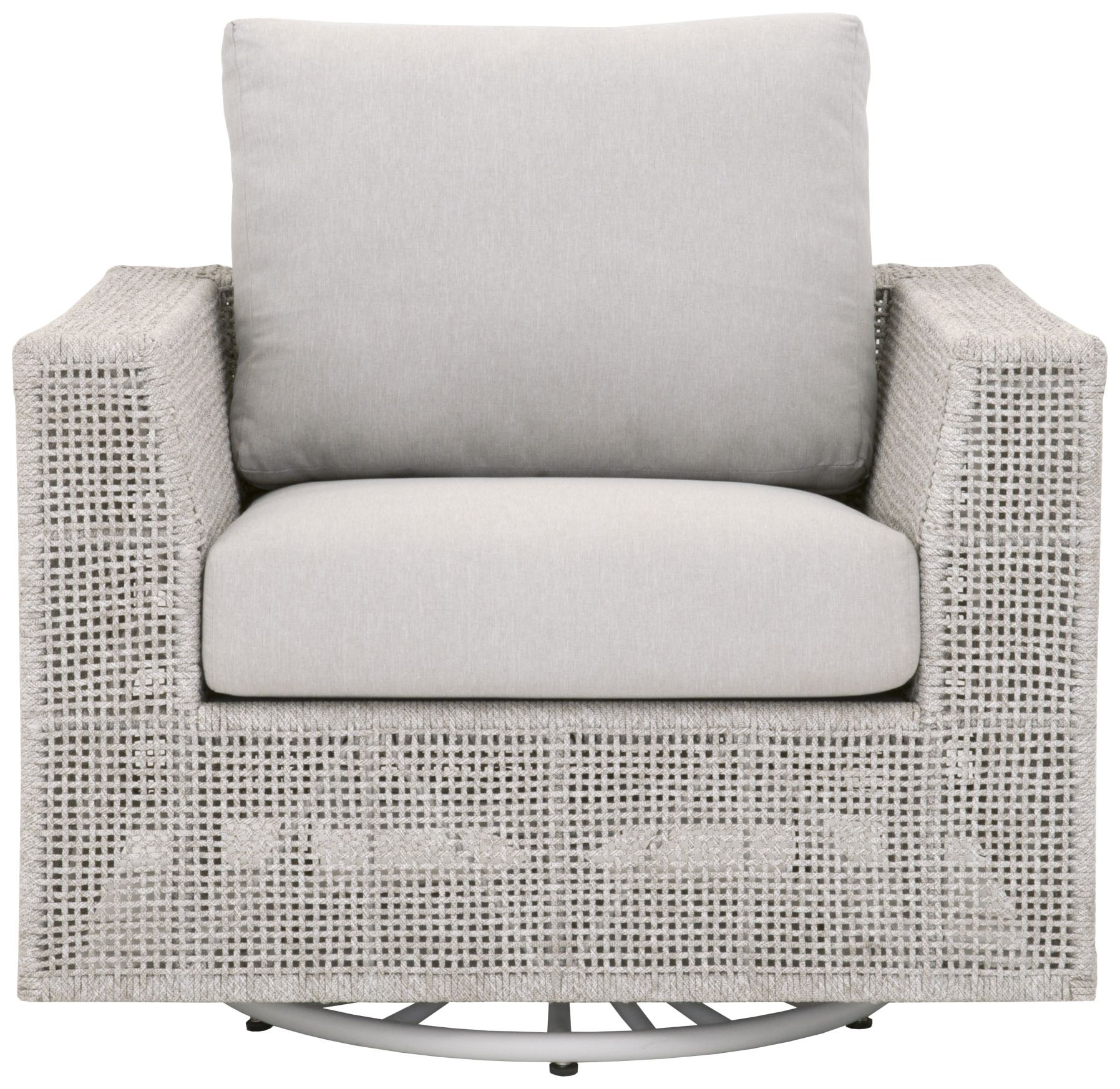 Tropez Outdoor Swivel Rocker Sofa Chair, Taupe & White Flat Rope