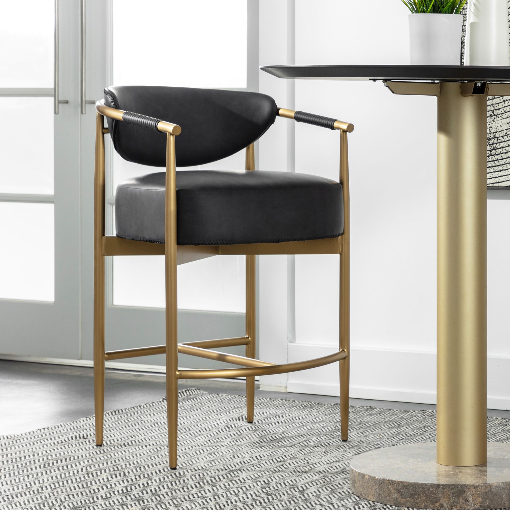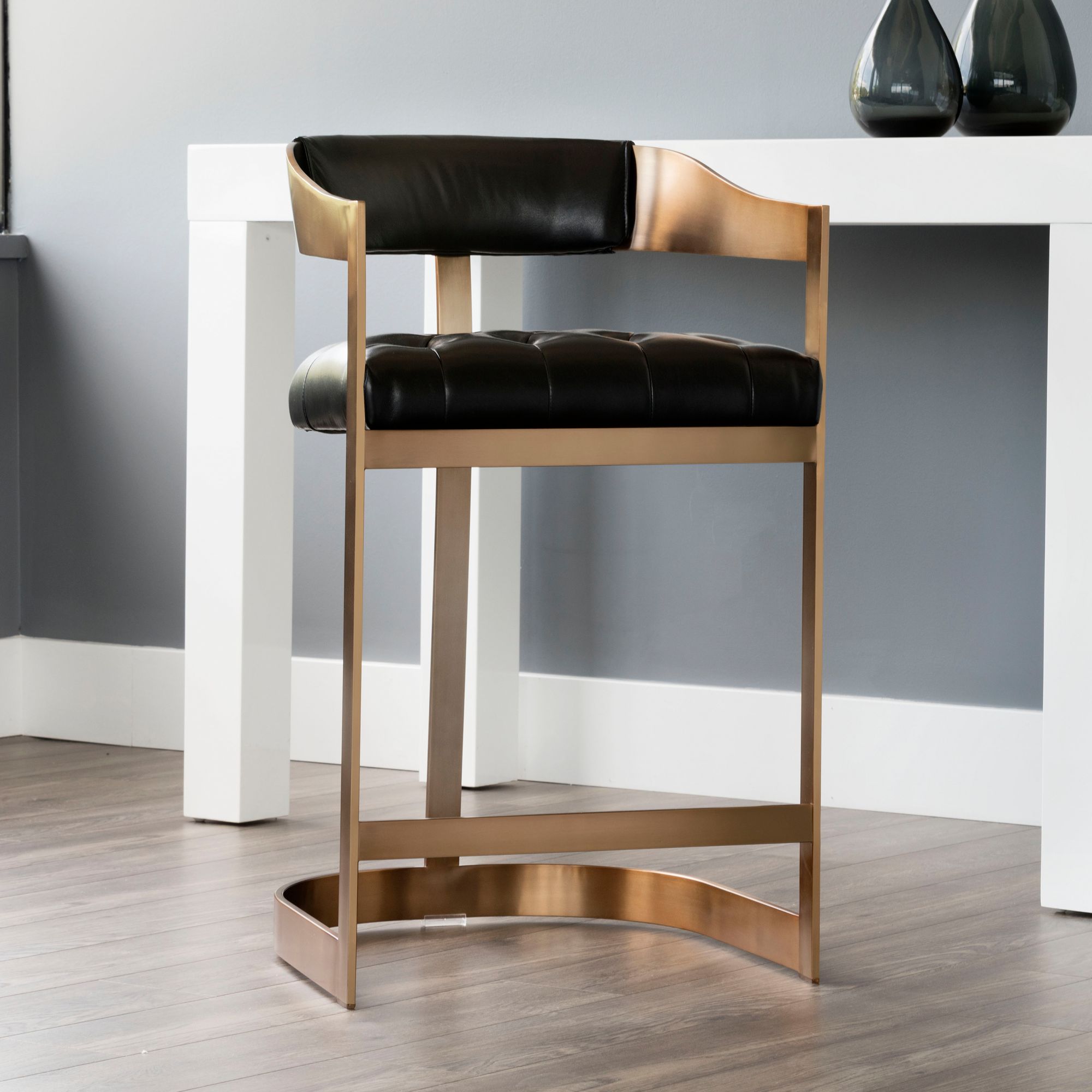 Sunpan Beaumont Counter Stool Antique Brass Cantina Black