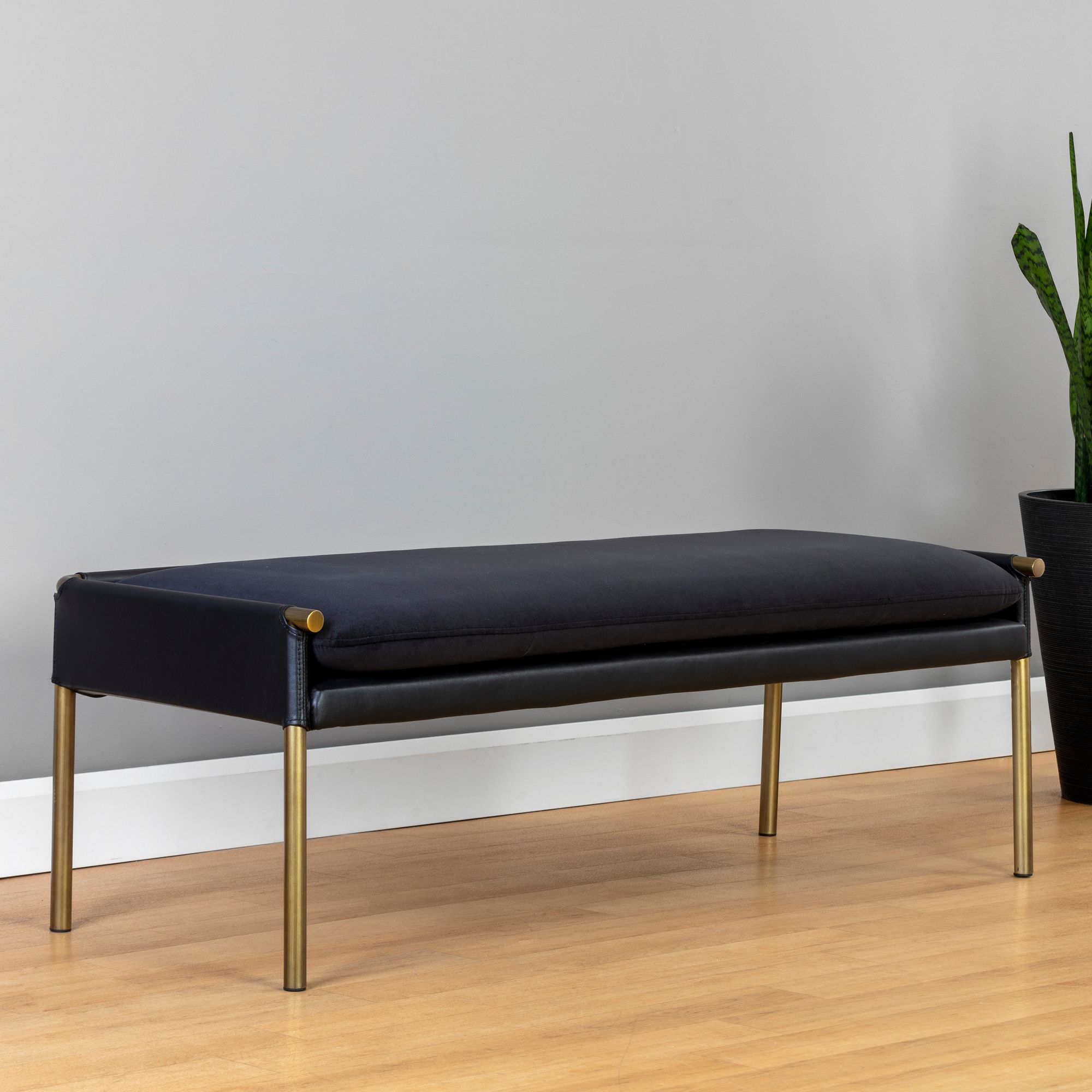 Sunpan Endall Ottoman Antique Brass Vintage Black Night Leather