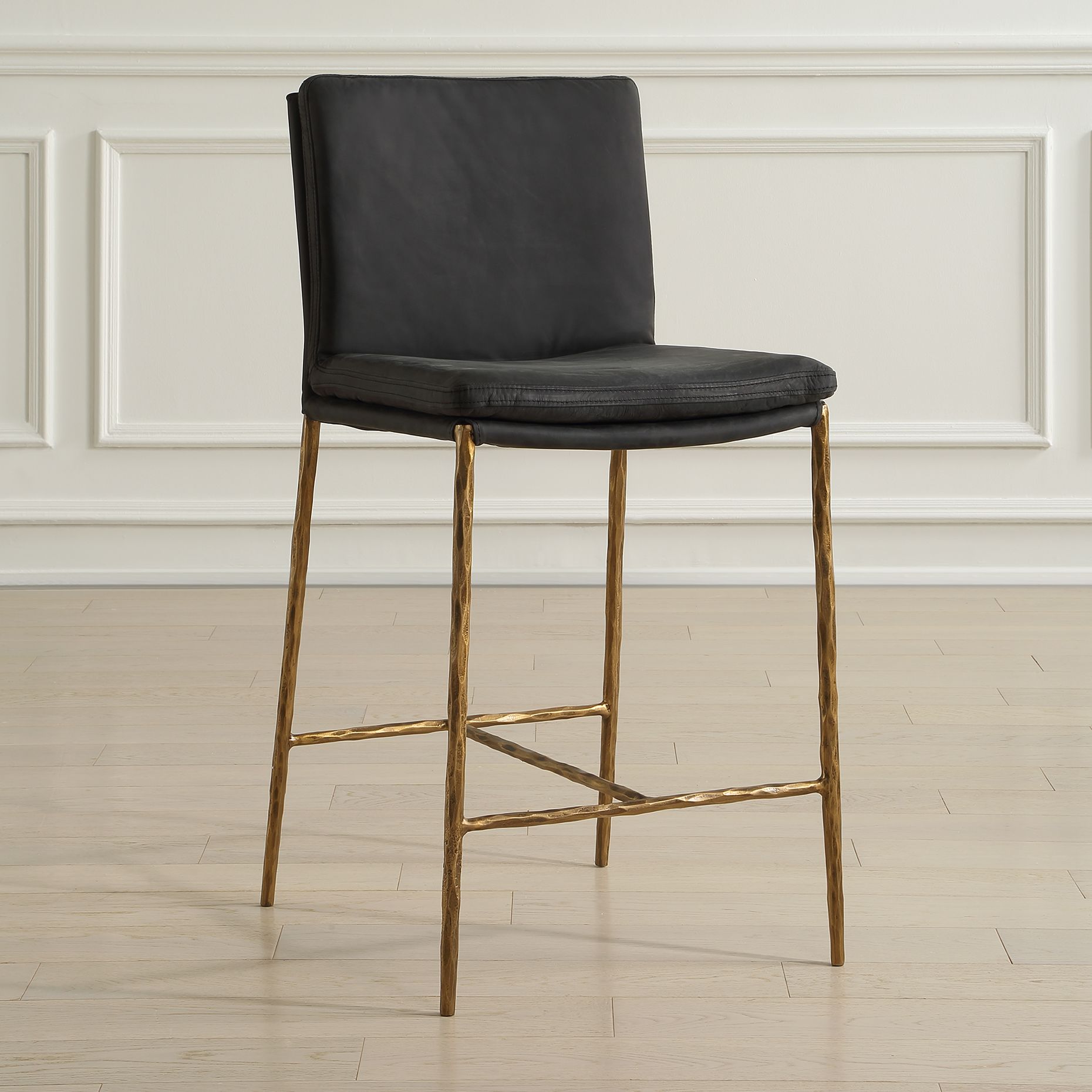 Uttermost Ascend Gold and Charcoal Leather Counter Stool