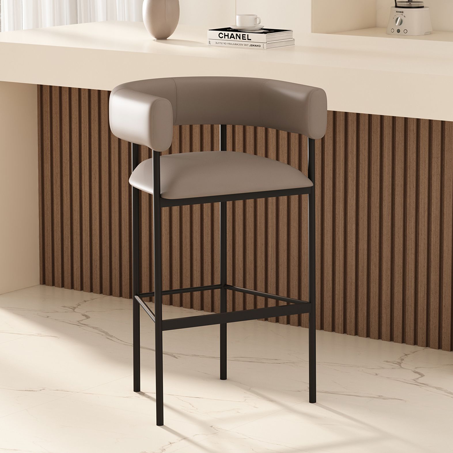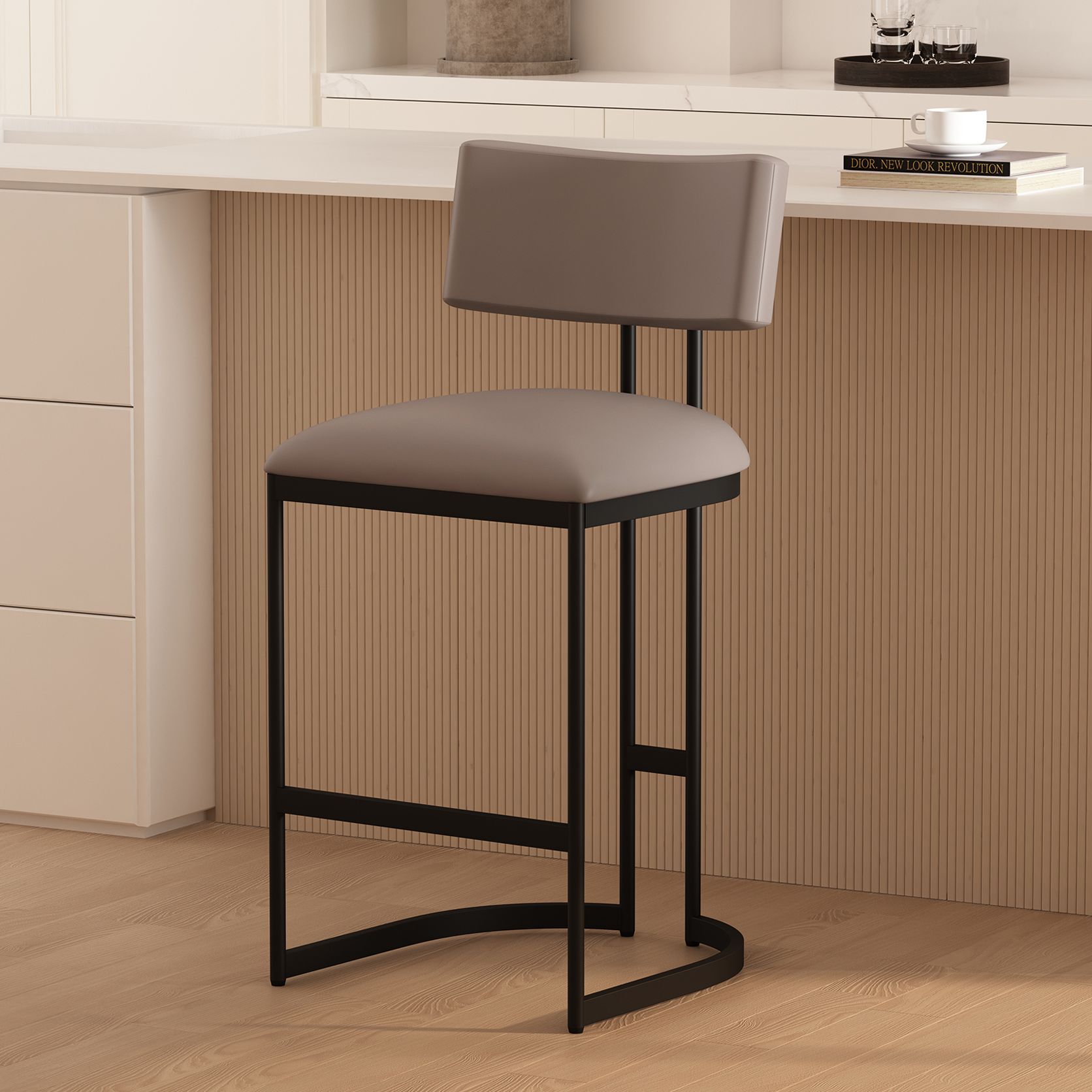 Juno Contemporary Modern Vegan Leather Metal Counter Stool in Taupe