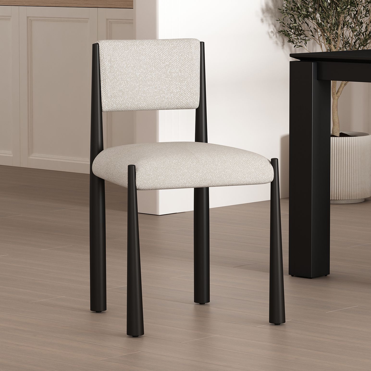 Lennor Mid-Century Modern Boucle Metal Side Chair in Cream - Set of 2