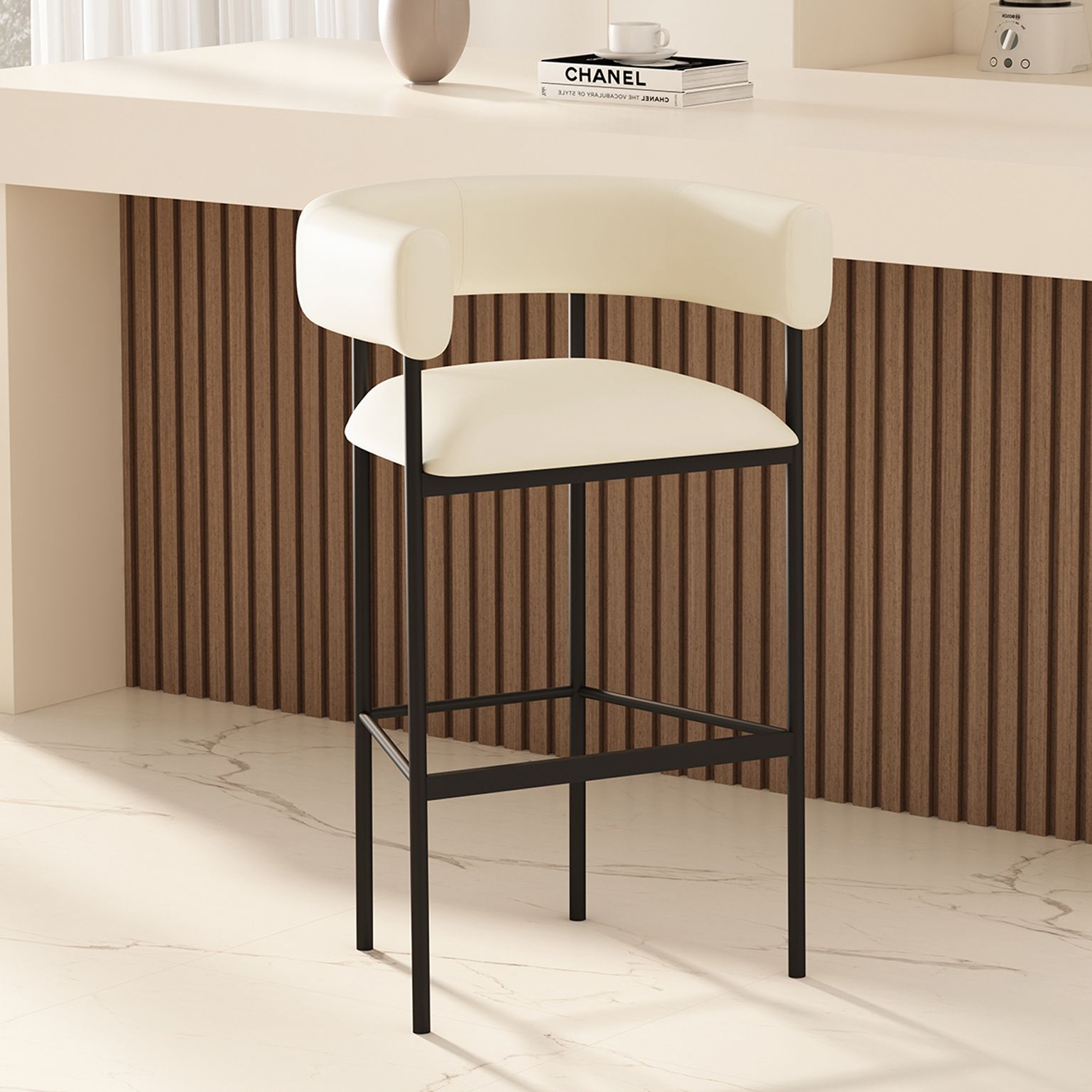 Onda Contemporary Vegan Leather Metal Upholstered Barstool in Ivory