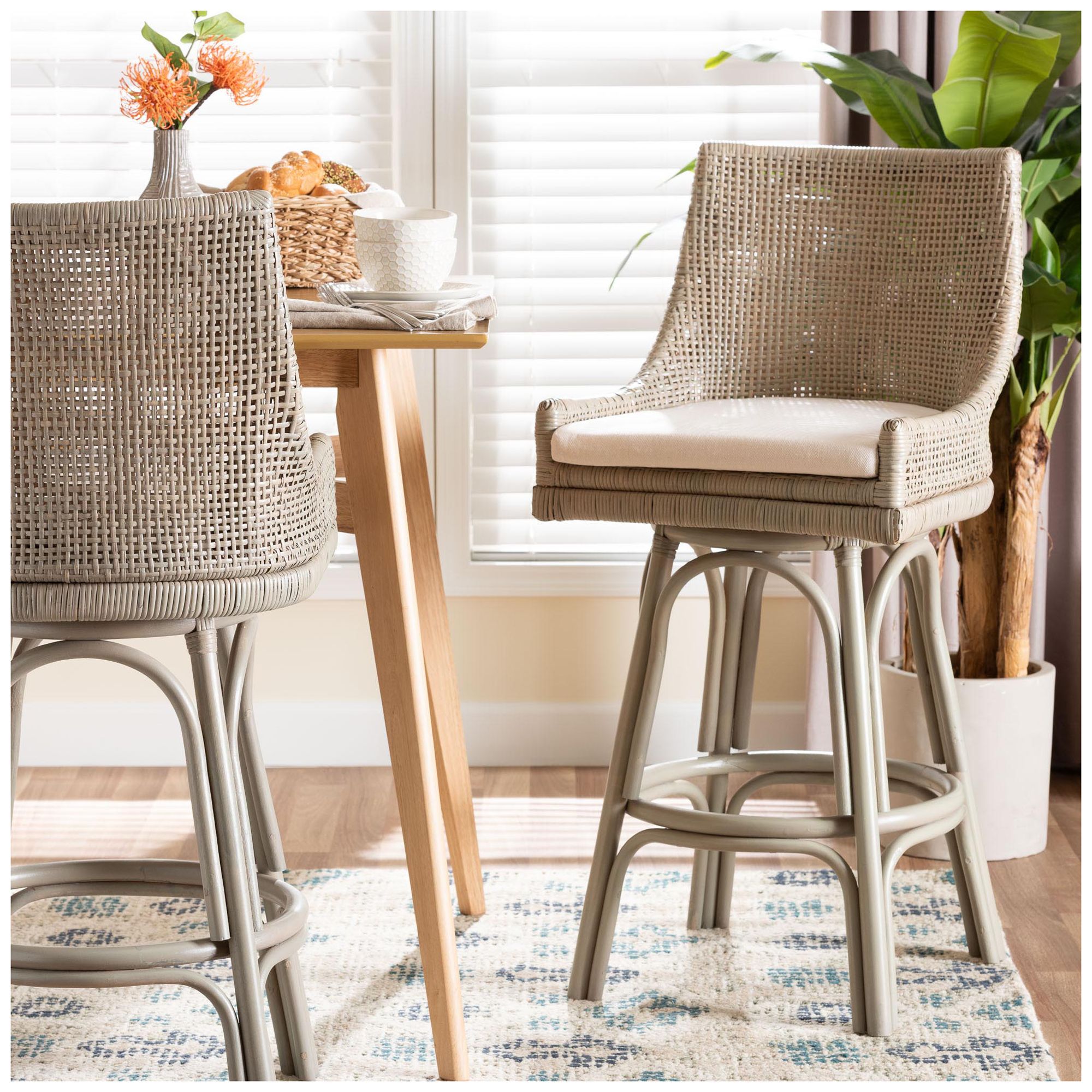 Baxton Studio Suci Natural Brown Rattan 2-Piece Dining Chair Set