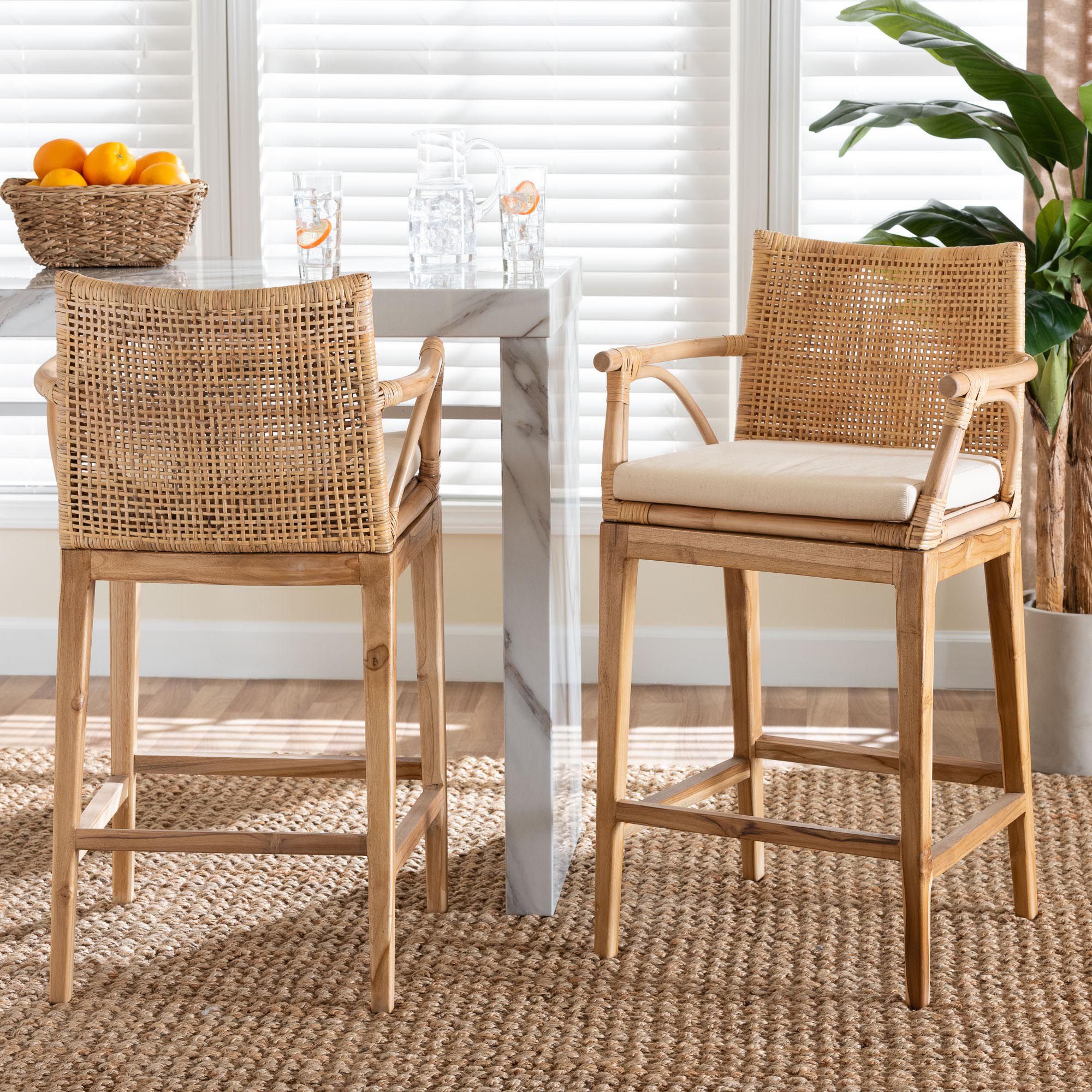 bali & pari Storsel Bohemian Natural Rattan and Teak Wood Bar Stool