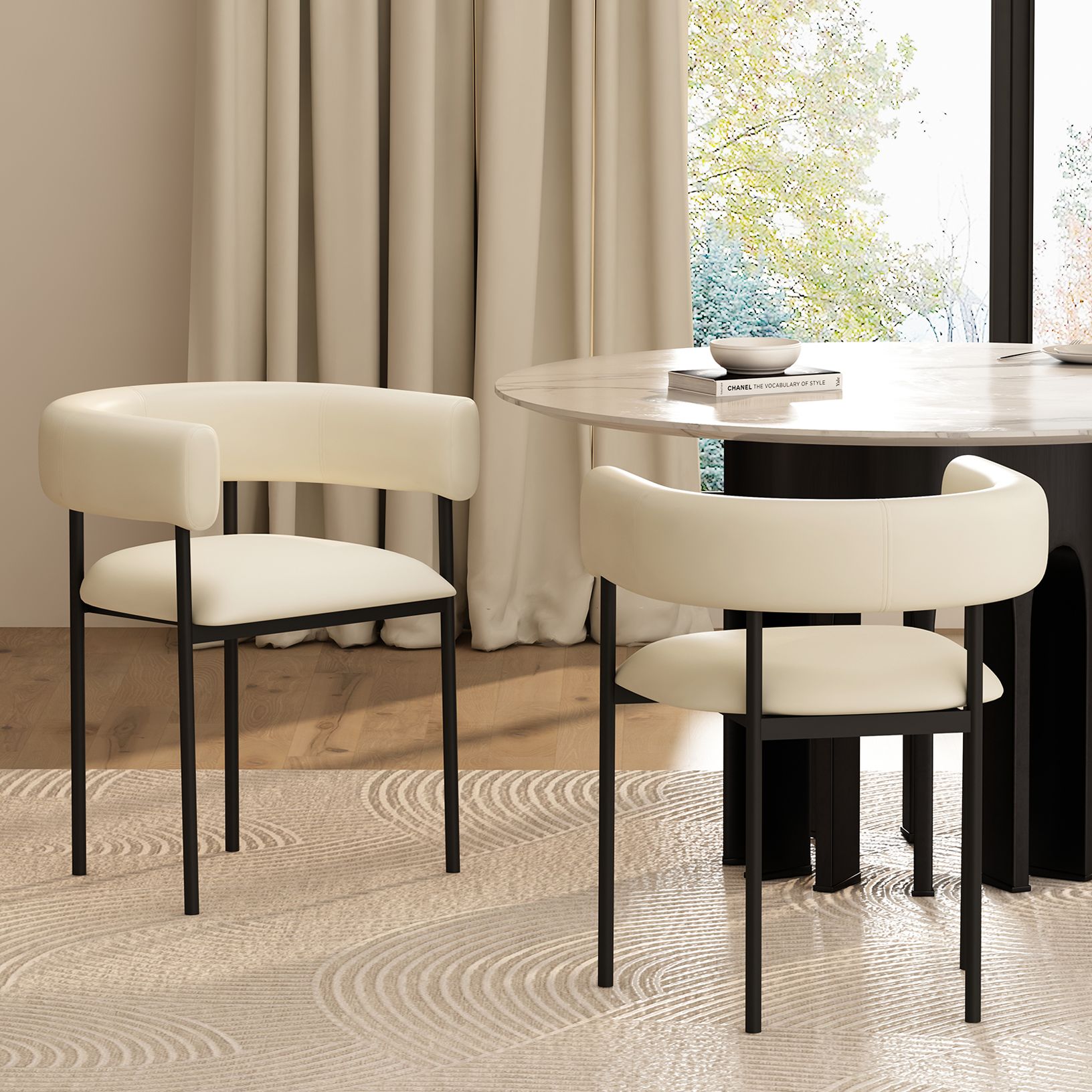 Onda Contemporary Vegan Leather Metal Dining Chair in Ivory