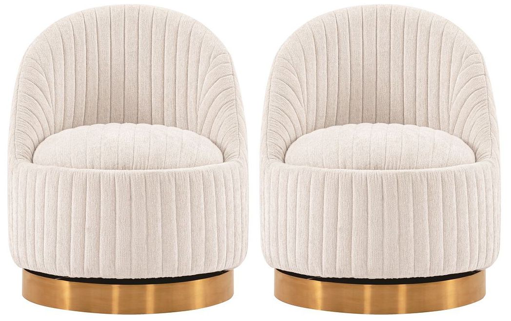Modern Leela Swivel Chenille Accent Chair in Cream- Set of 2