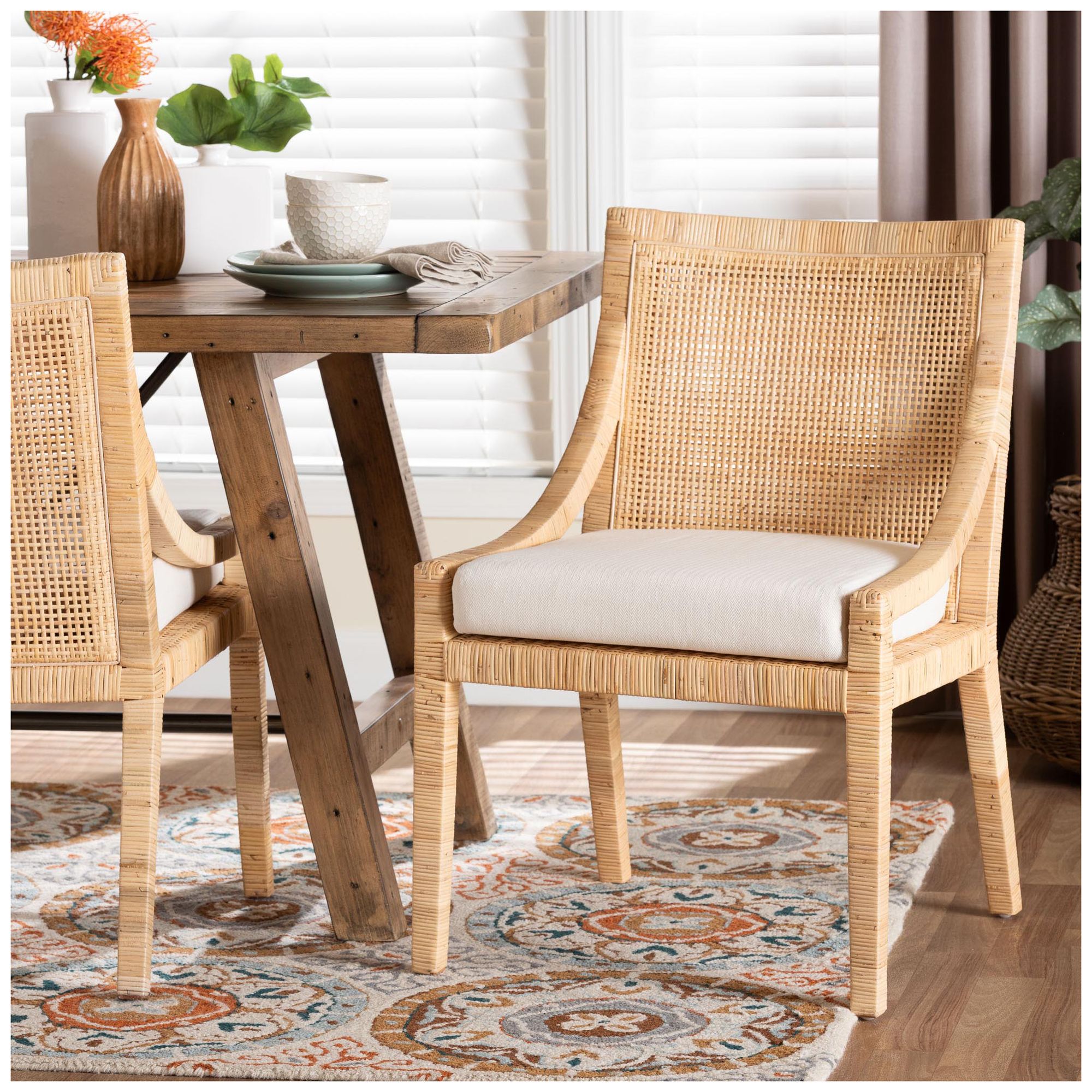 bali & pari Abiel Natural Rattan 2 Piece Dining Armchair Set with Cushion