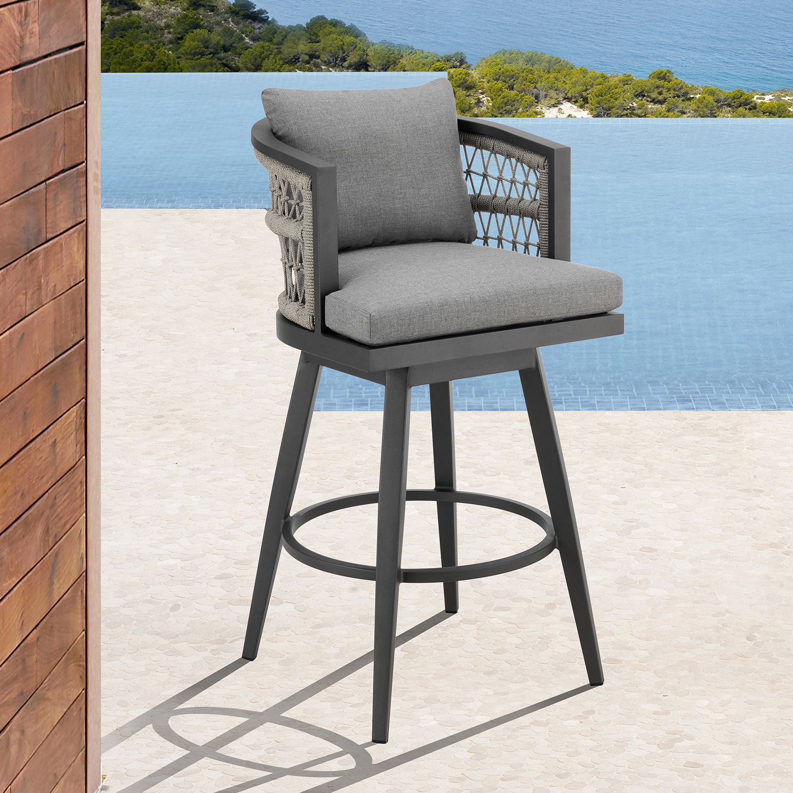 Zella 30 in. Outdoor Barstool in Aluminum, Rope, and Earl Gray Cushions