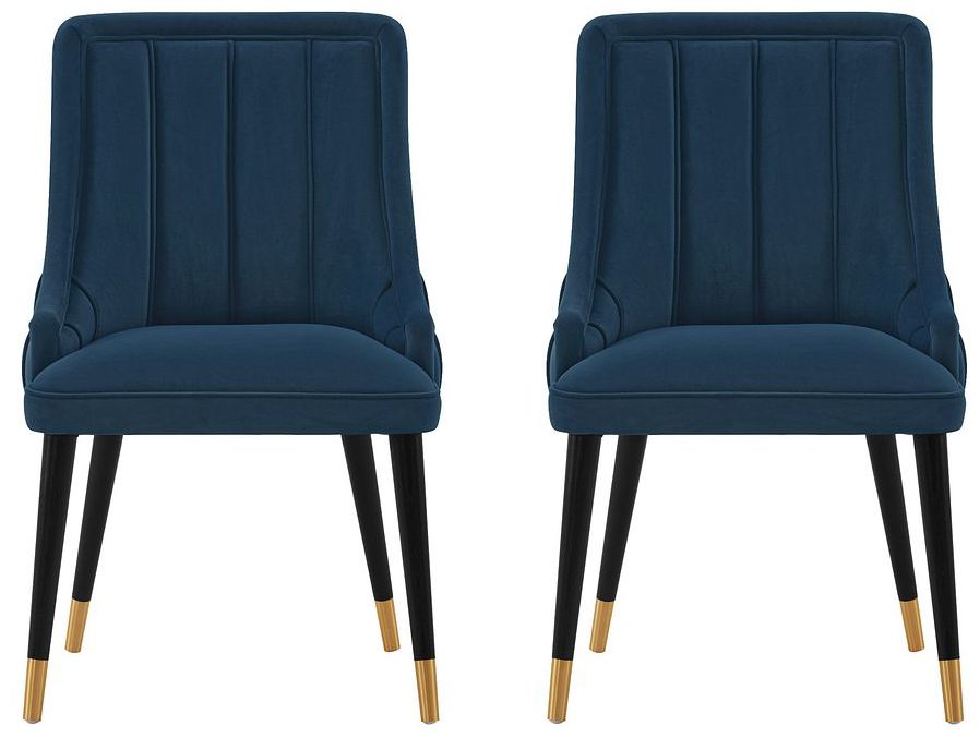 Modern Eda Velvet Dining Chair in Midnight Blue- Set of 2
