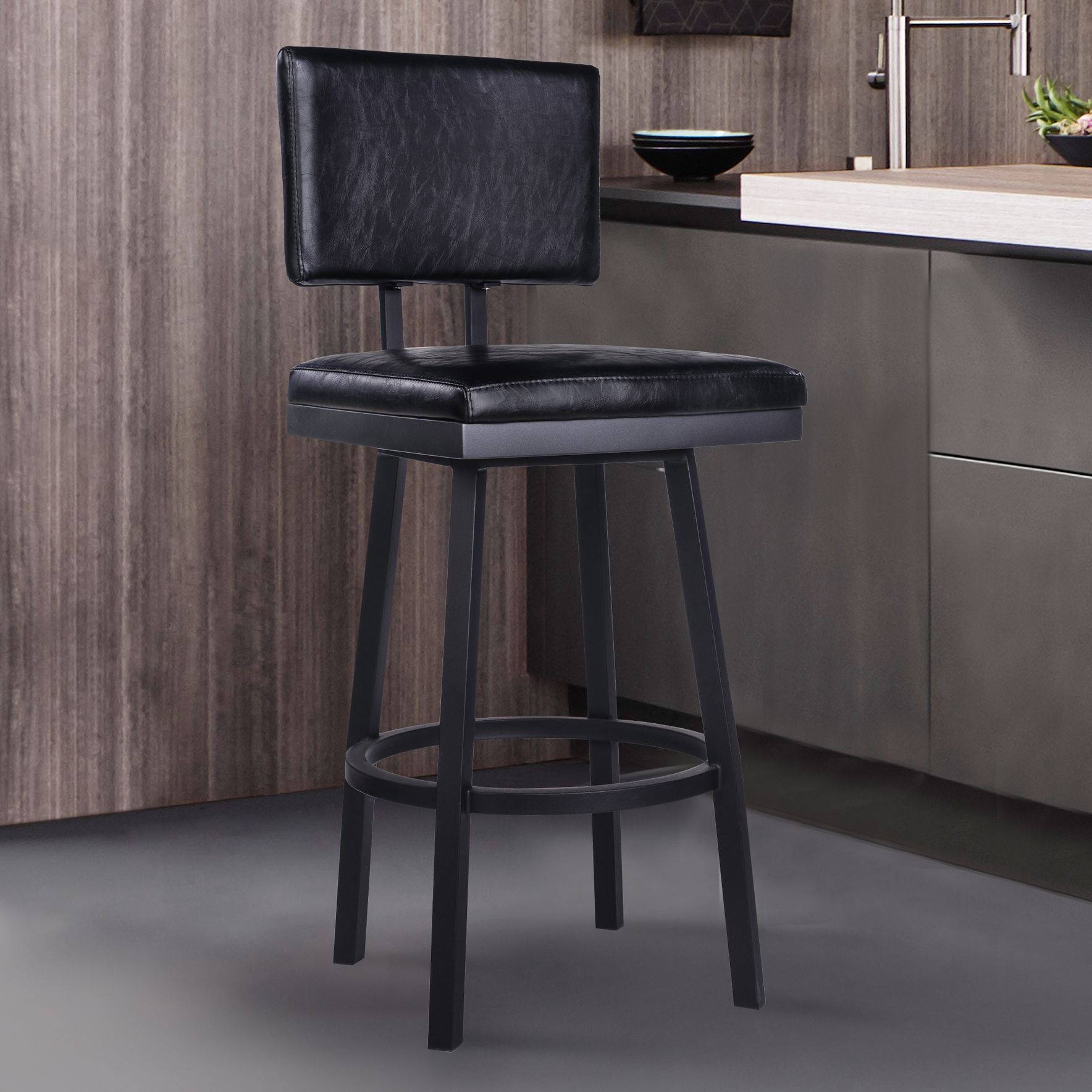 Balboa 26 in. Swivel Barstool in Black Powder Coated Finish, Vintage Black
