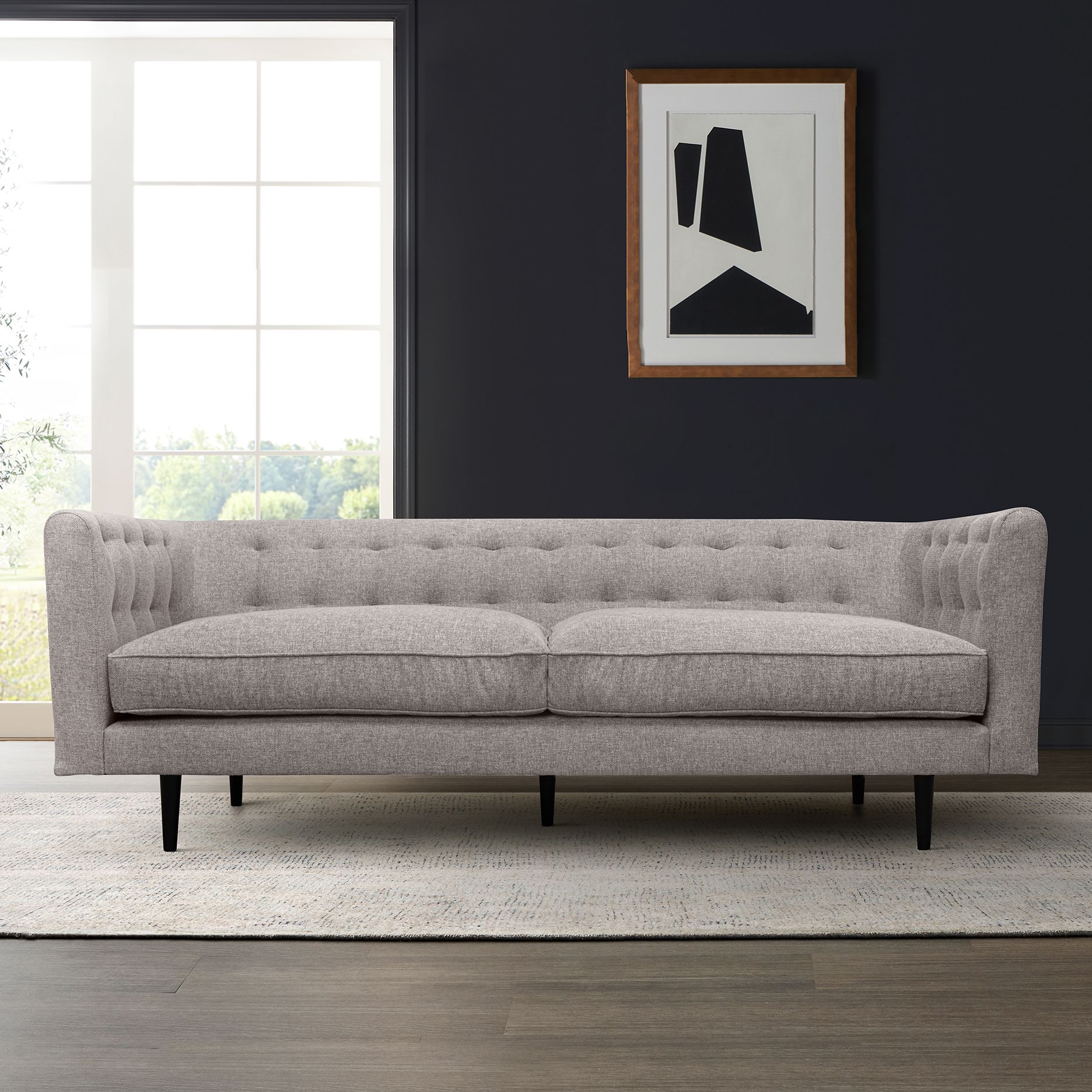Annabelle 80 in. Modern Sofa in Gray Fabric, and Black Wood Legs
