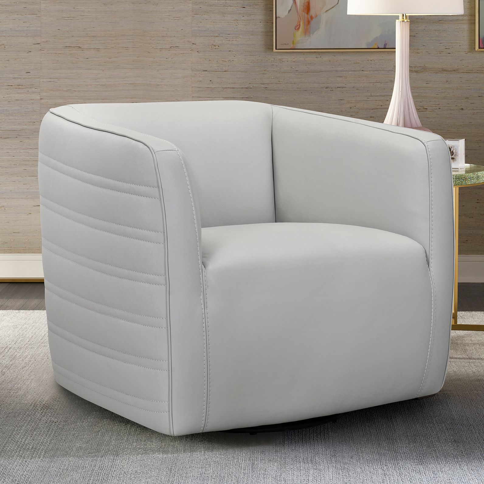Melanie Swivel Chair in Dove Gray Genuine Leather