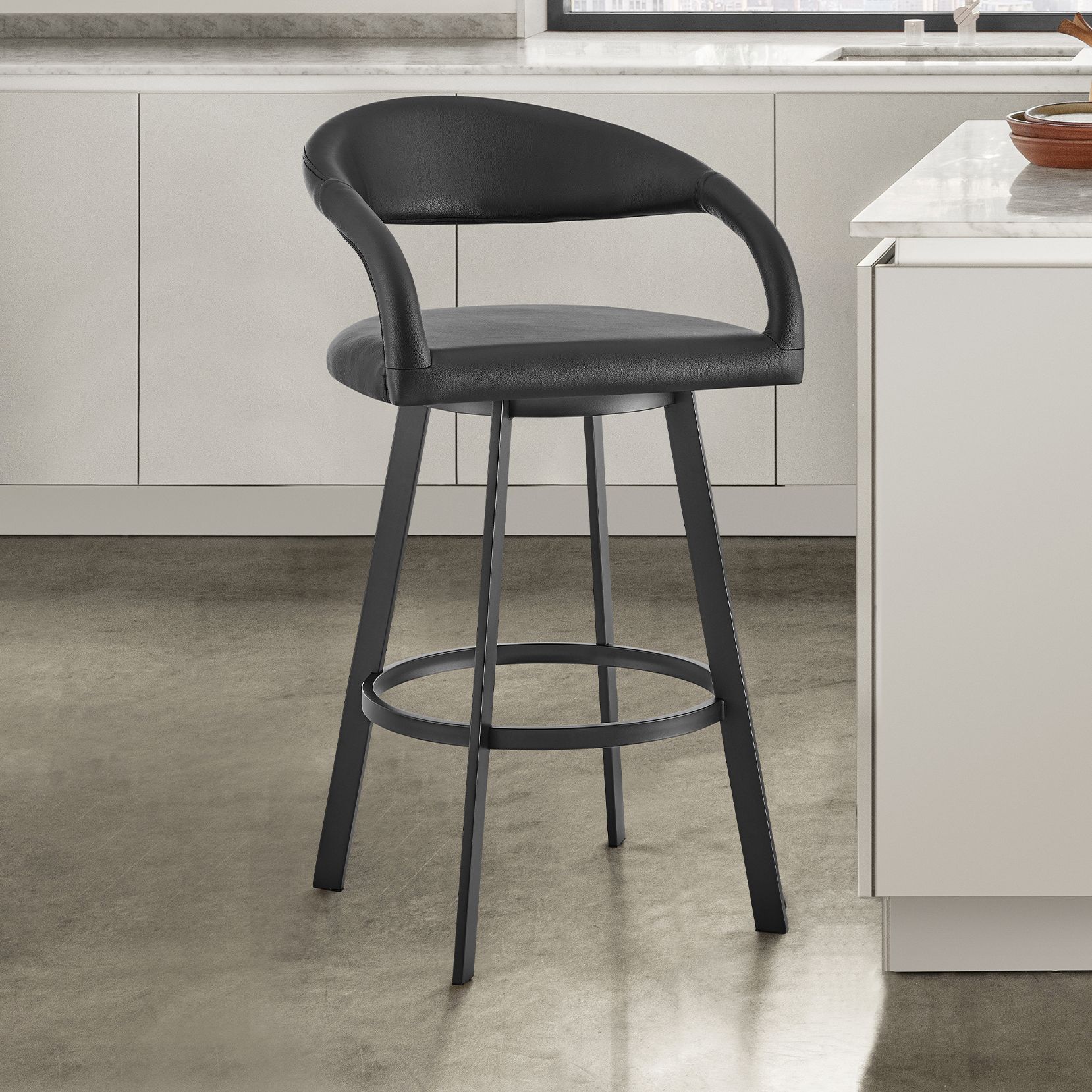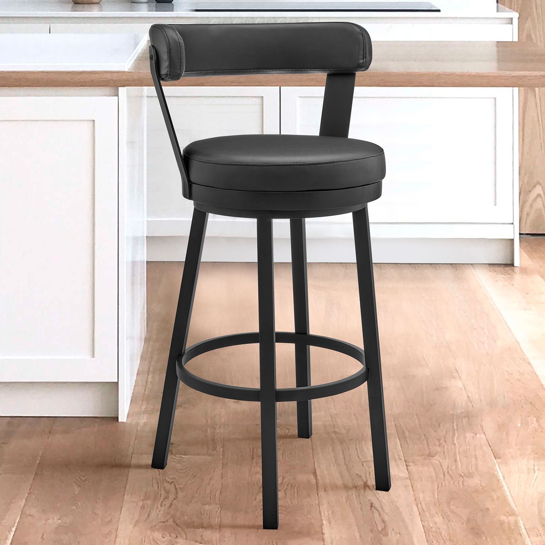Ramona 30 in. Swivel Bar Stool with Matte Black Iron and Black Faux Leather