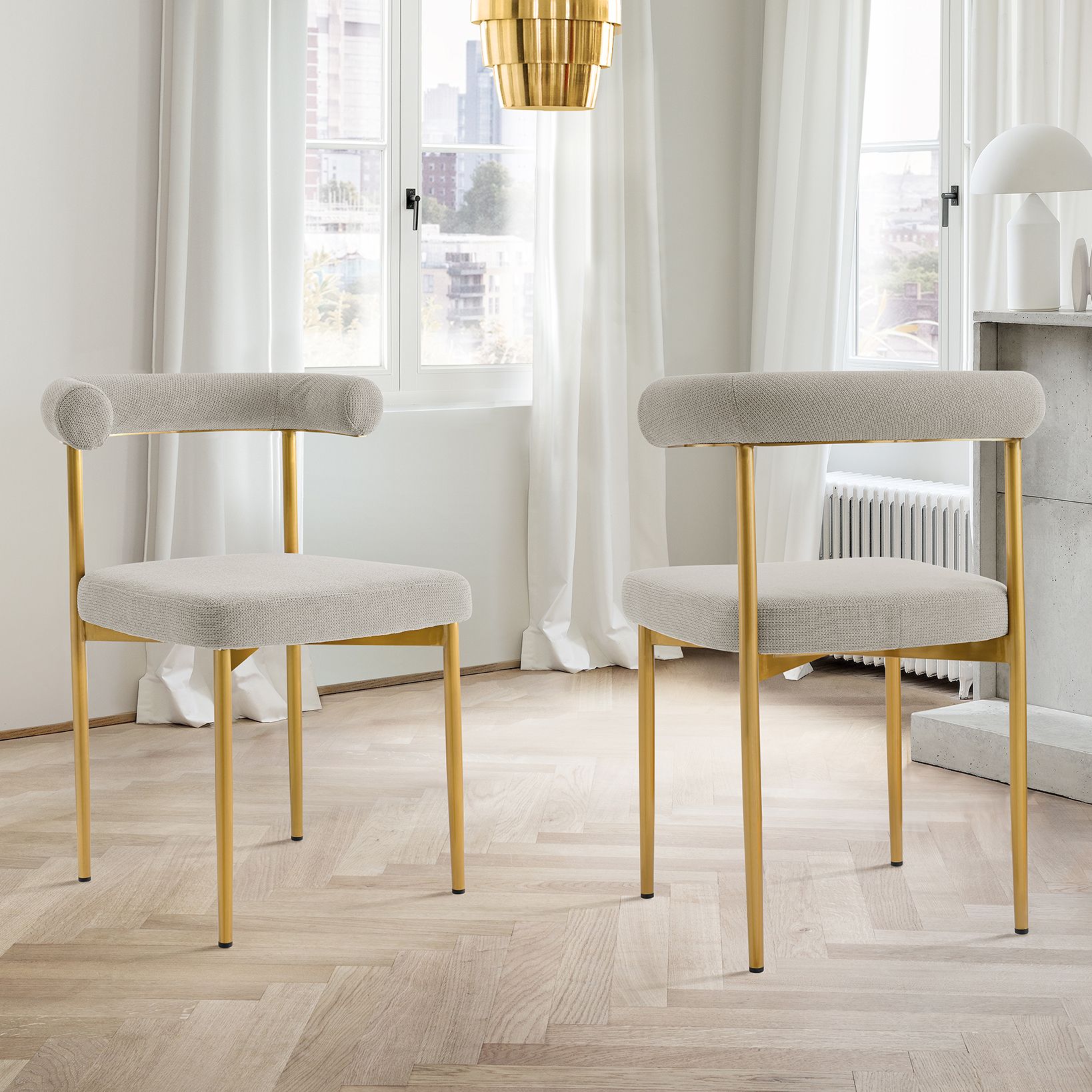 Shannon Set of 2 Dining Chair in Gold Brushed Stainless Steel, Taupe Fabric