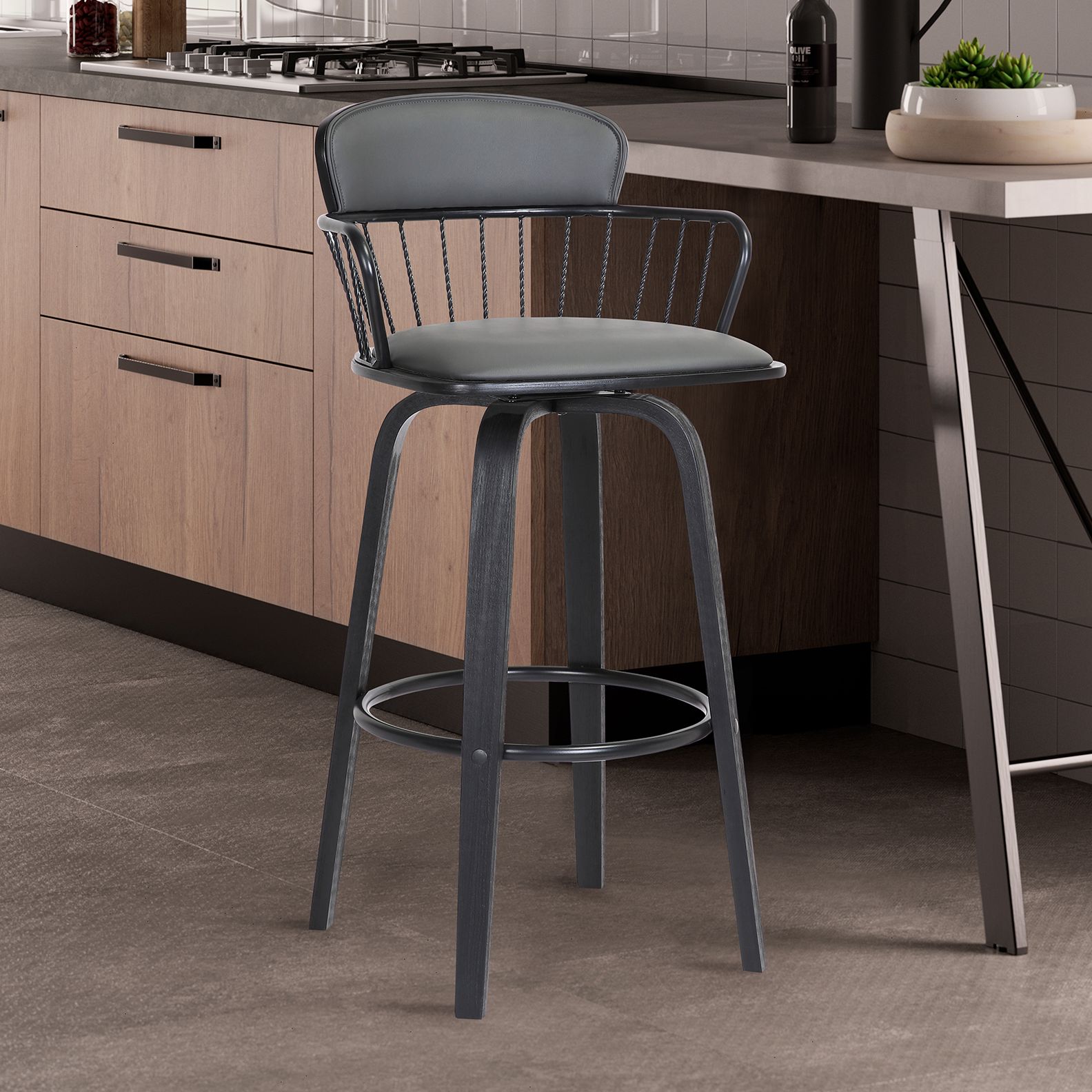 Willow 25.5 In. Swivel Counter Stool in Black Wood and Grey Faux Leather