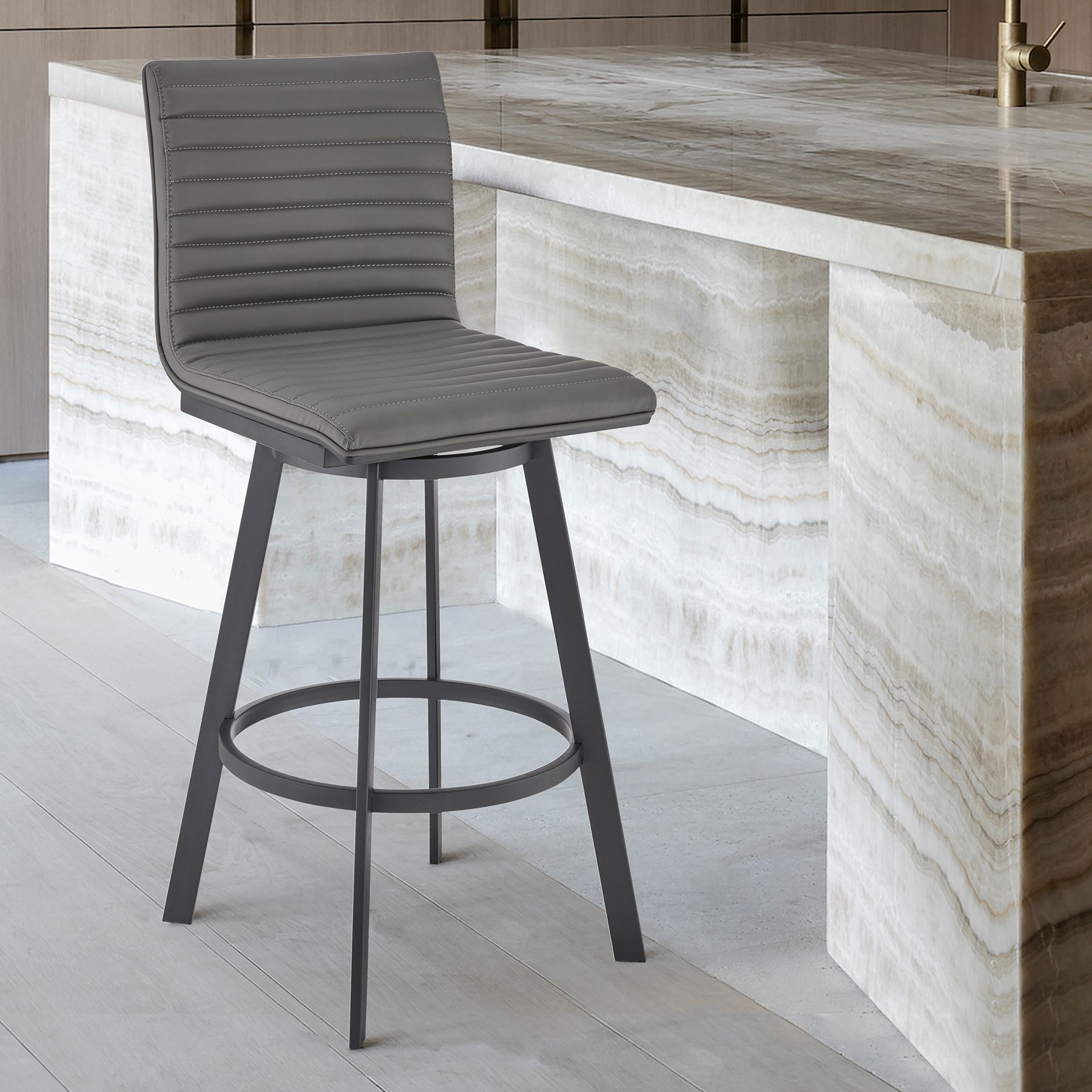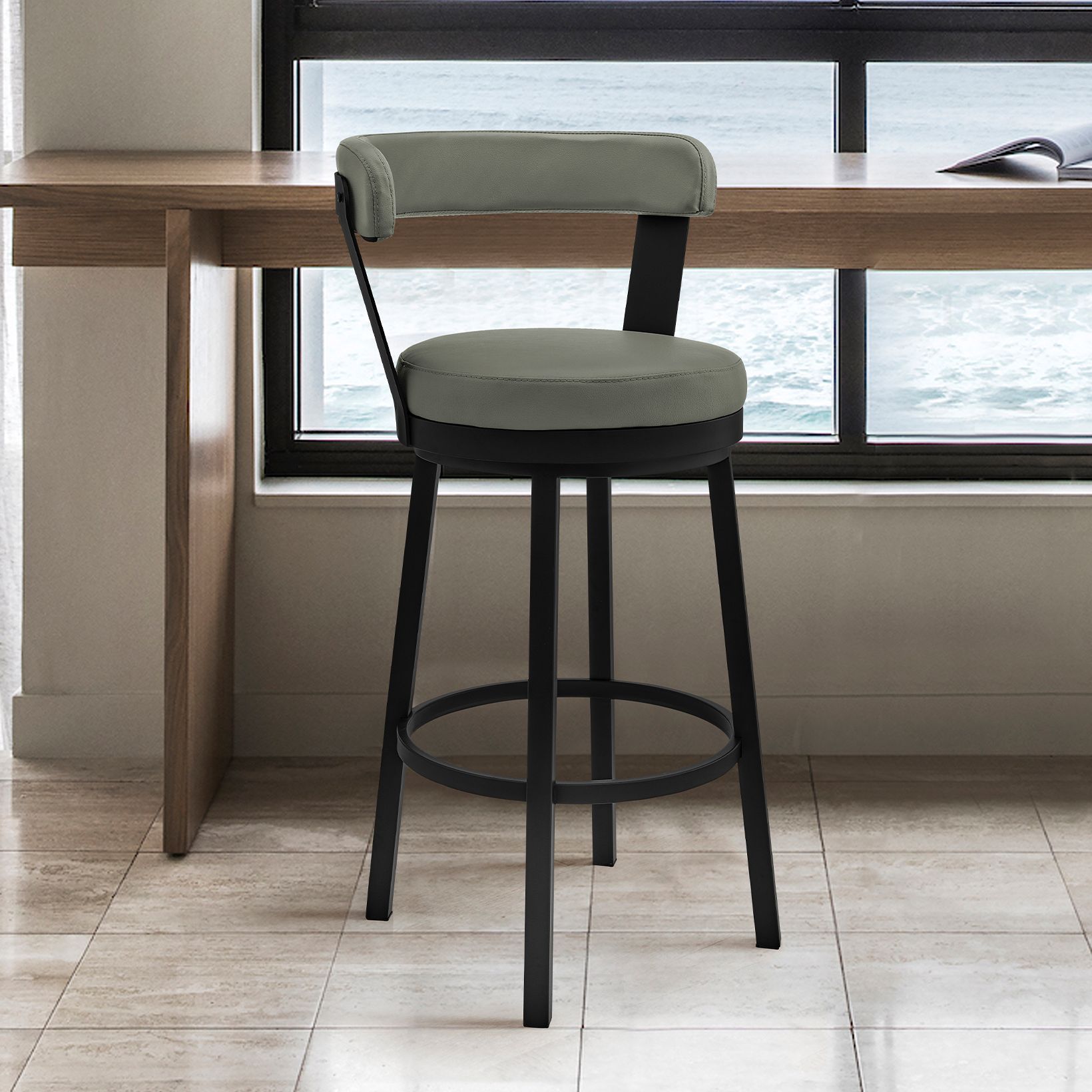 Nikole 26 in. Swivel Barstool in Black Finish, Gray Faux Leather