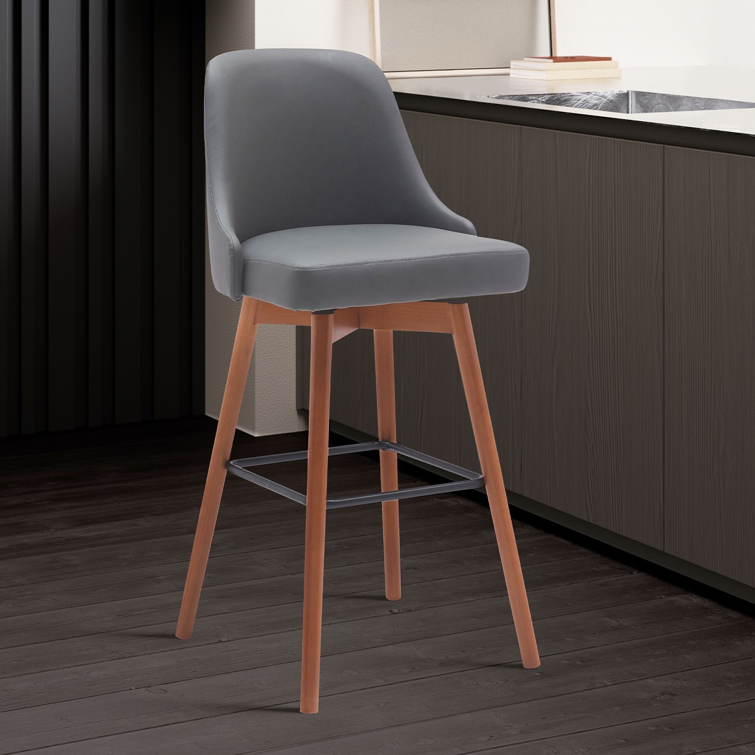 Sicily 26 in. Swivel Barstool in Walnut Wood and Grey Faux Leather